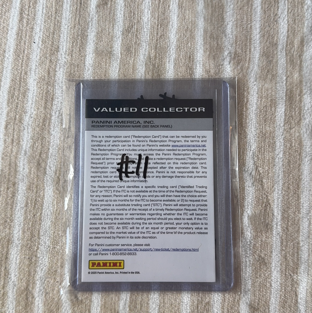 【关于个人】8年球星卡老玩家,目前沉迷收藏PZ彩虹套,相信不少朋友都认识,目前主要出一些自己不收藏的球星卡,希望各位卡友都热爱无价,收藏过程,欢迎加V交流代拍:Vvk208034。【拍前须知】参拍前请先阅读拍卖规则,出价即表示认同规则! 【关于拍品】 1.*一般为通行卡品,特殊卡品会注明。参拍前请仔细看图,也可以咨询索要细节图,参拍视为接受卡品,拍下后不接受以卡品为理由的任何不进行交易的行为。 2. *国宝、IMM 、小真金、Noir等厚卡有白边白角、卡面有轻印属于通行卡品。 3.*Prizm、 Select、 Optic、 IMM等折射、镜面卡片有小划痕、小印记或非人为卡片制作印刷的问题属于通行卡品。 4.*要保证评级金标的请直接购买评级卡,品相控艺术家卡迷请直接购买相应评级卡。 5.*卡夹卡砖磨损不属于卡品问题。【发货规则】1.*关于订单* 所有拍卖不累计发货 2.*付款时间* 所有拍卖需要在3日内付款,特殊原因请提前联系客服,截标3日未付款将会进行投诉封号处理 3. *发货地址* 所有交易线上支付,快递一律默认地址,若需要修改地址可以在支付时更改 4. *快递费用* 邮费统一以此单标明的价格为准,超重另算。1000元以下商品快递只支持寄付;快递公司默认发顺丰,偏远地区只发顺丰,邮费商议;超过1000元的卡建议发顺丰到付,快递发出后出现遗失毁损卖家无法赔付 5.*卡片保护* 卡片不含卡砖 6.*售后服务* 快递运输中如遇卡品损坏,本店将不负责赔偿,请您联系快递公司处理。