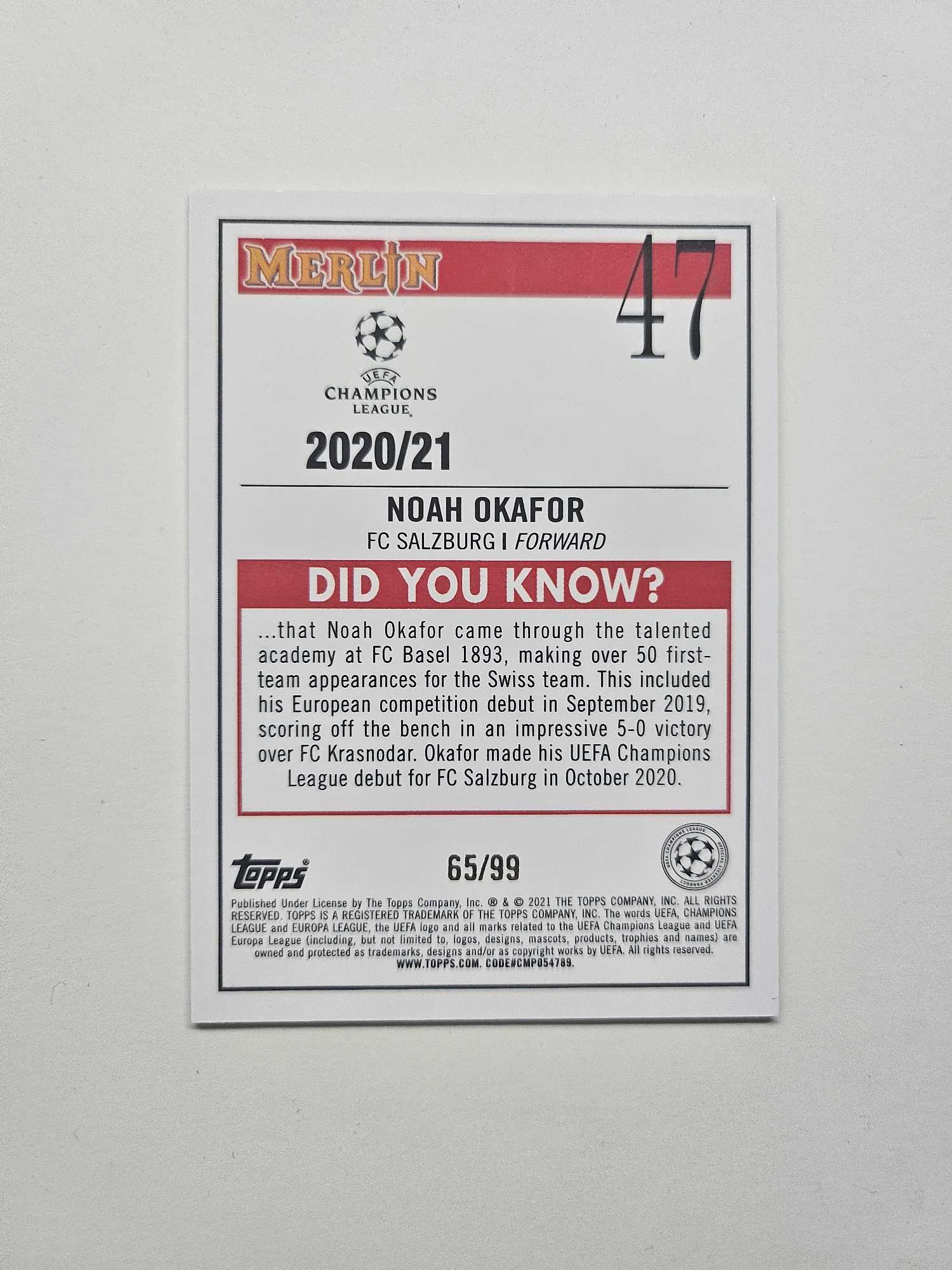 2021 Topps Merlin chrome Noah Okafor RC 奥卡福 新秀99编绿mojo折 莱比锡红牛 利兹联 潜力无限