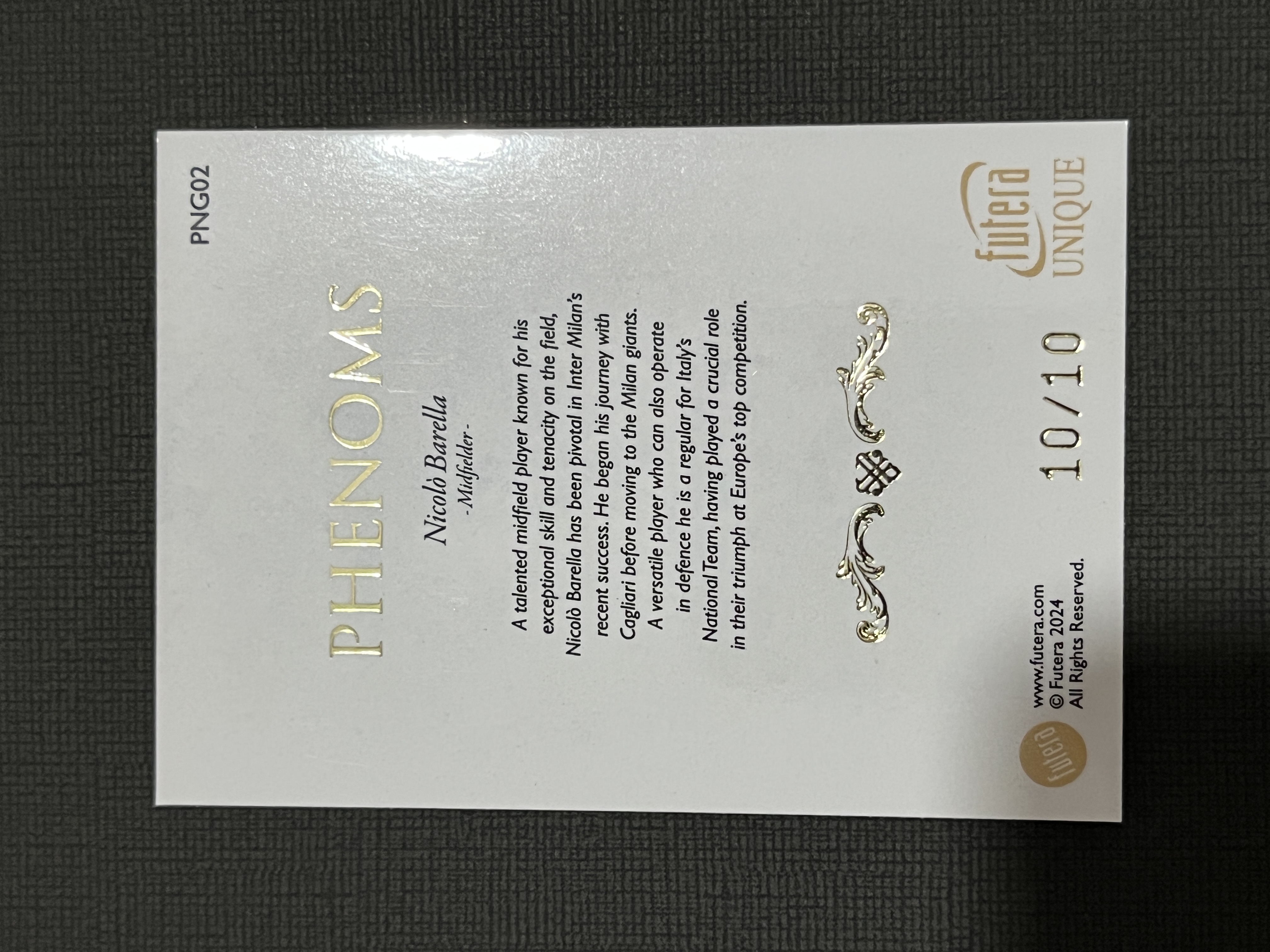 2024 Futera Futera Unique Nicolò Barella 福特拉 巴雷拉 意大利 国际米兰 phenoms 金框特卡 尾编 10/10编