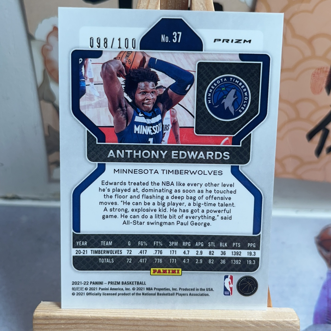 2021-22 Panini Prizm Anthony Edwards 森林狼 华子 爱德华兹 红泡泡 100编 凑套必备 卡品如图