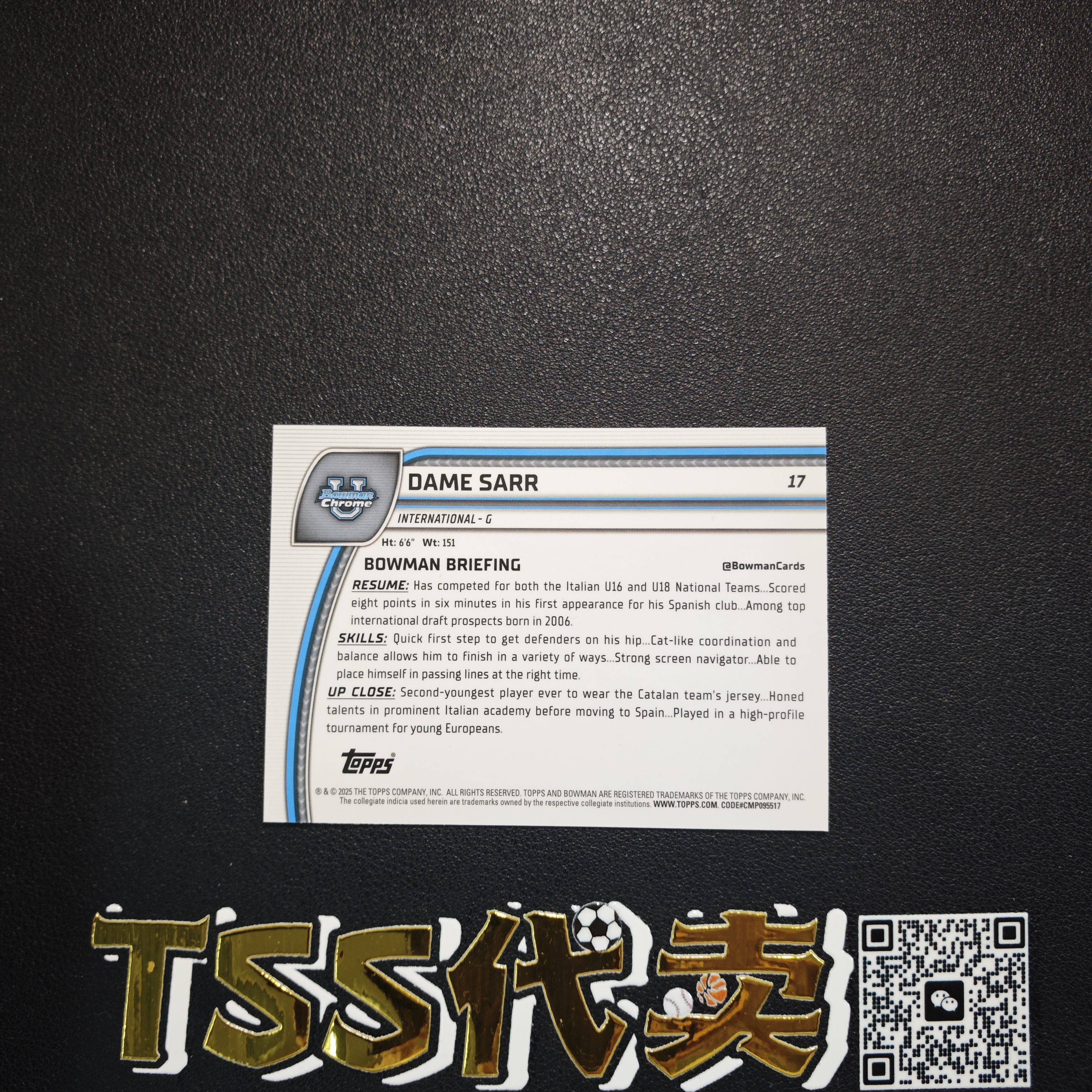 2025 【TSS代卖-预付80%】 Chrome sarr chrome bowman 1st 萨尔 蓝折 /199编 卡品如图 JH4196 LK20-園