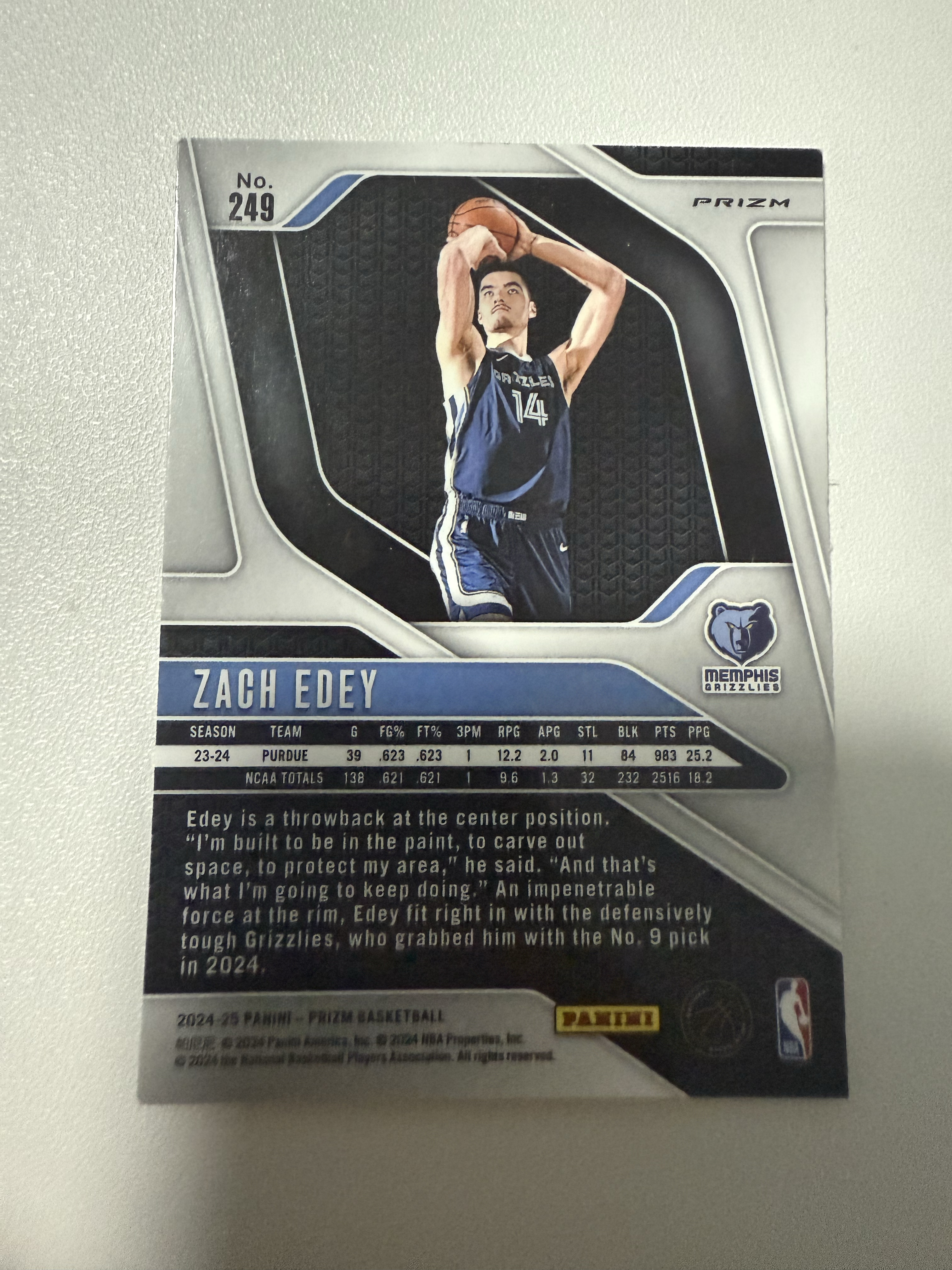 2024-25 Panini Prizm Zach LeDay RC prizm 扎克 埃迪 周志豪 新秀 银折 灰熊队