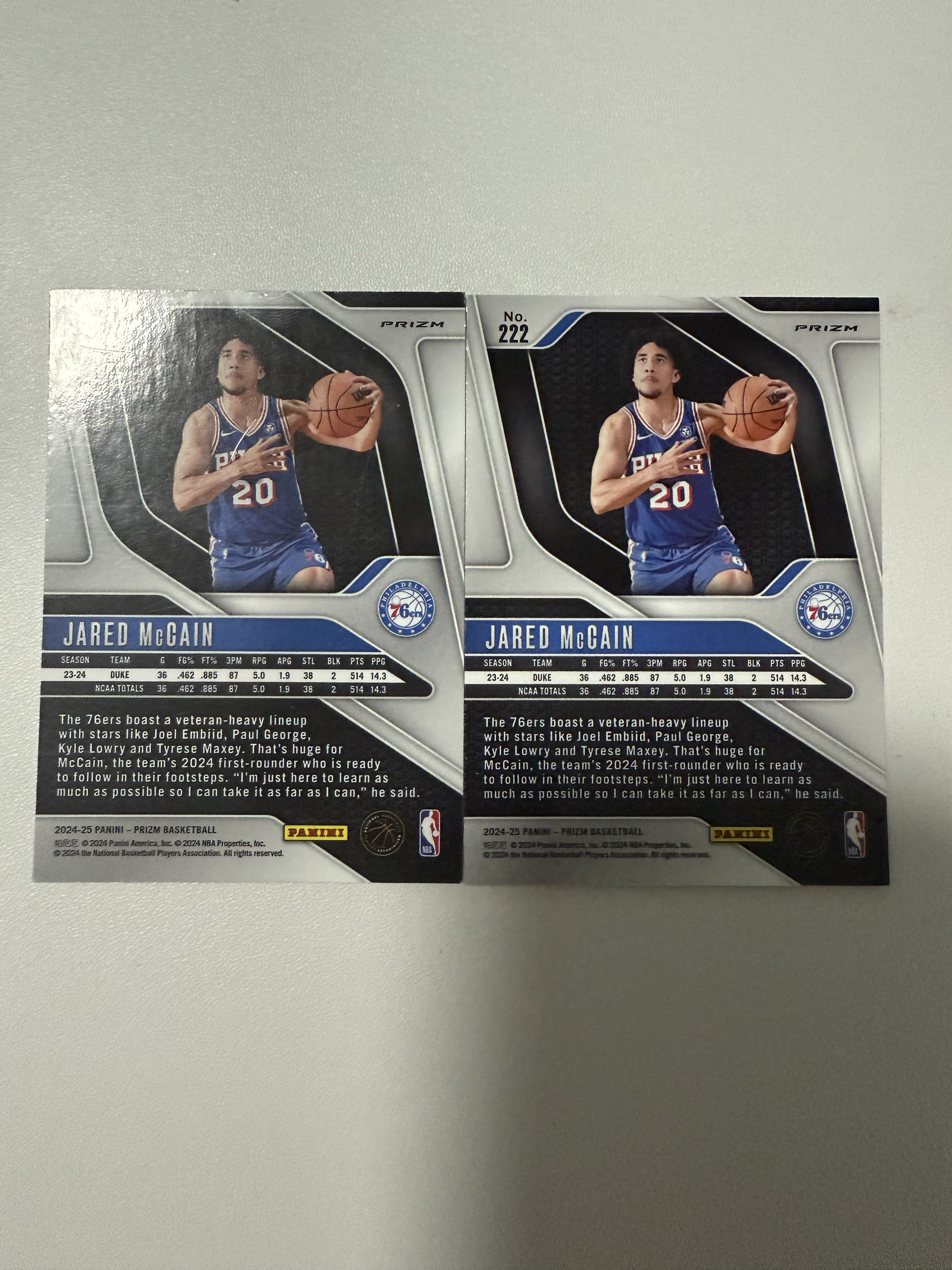 2024-25 Panini Prizm Jared McCain RC prizm 贾里德 麦凯恩 魔仙哥 新秀 银折 两张打包 76人