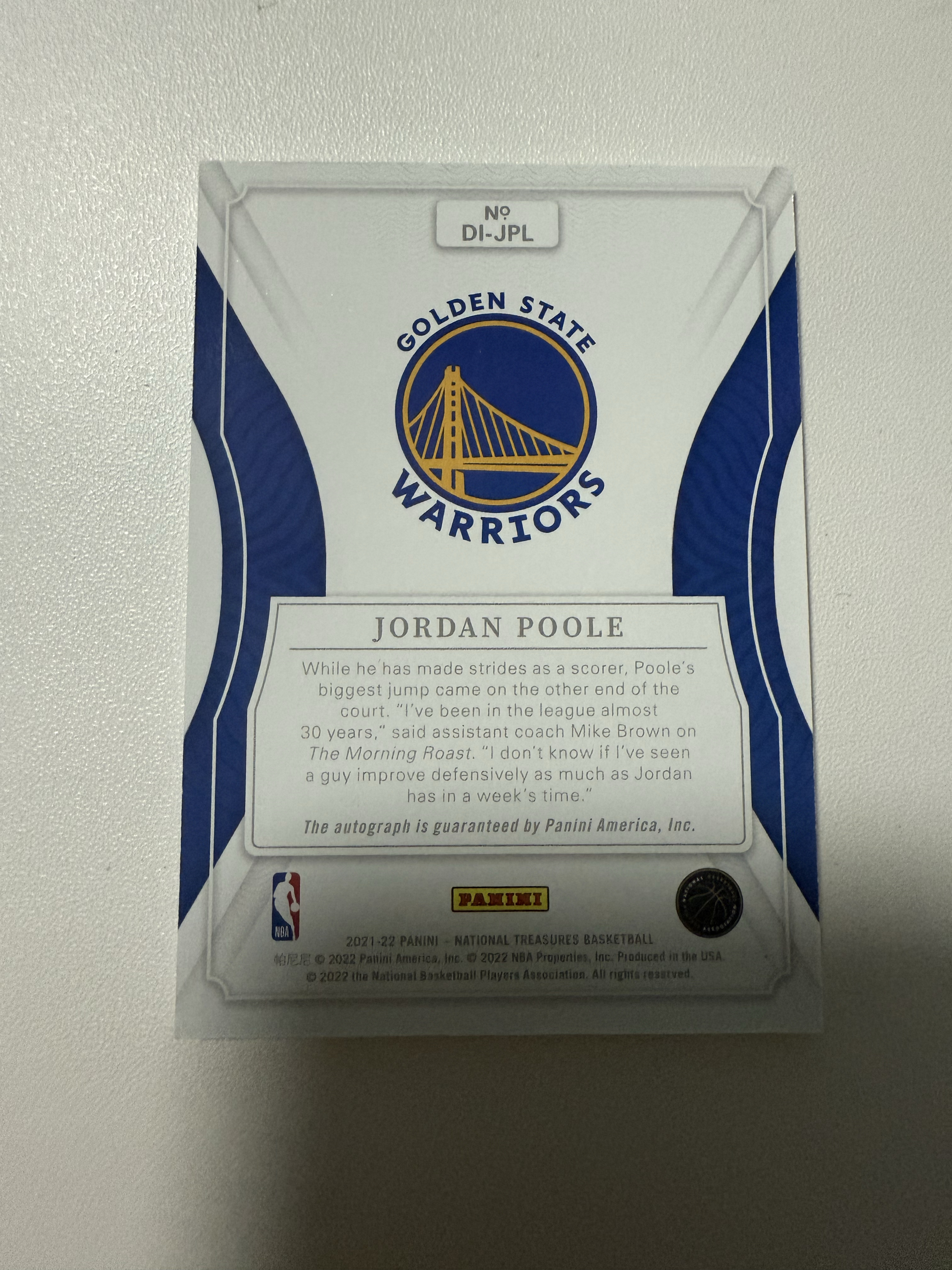 2021-22 Panini National Treasures Jordan Poole 乔丹 普尔 勇士 国宝 60/99编 INK签 签字 卡签