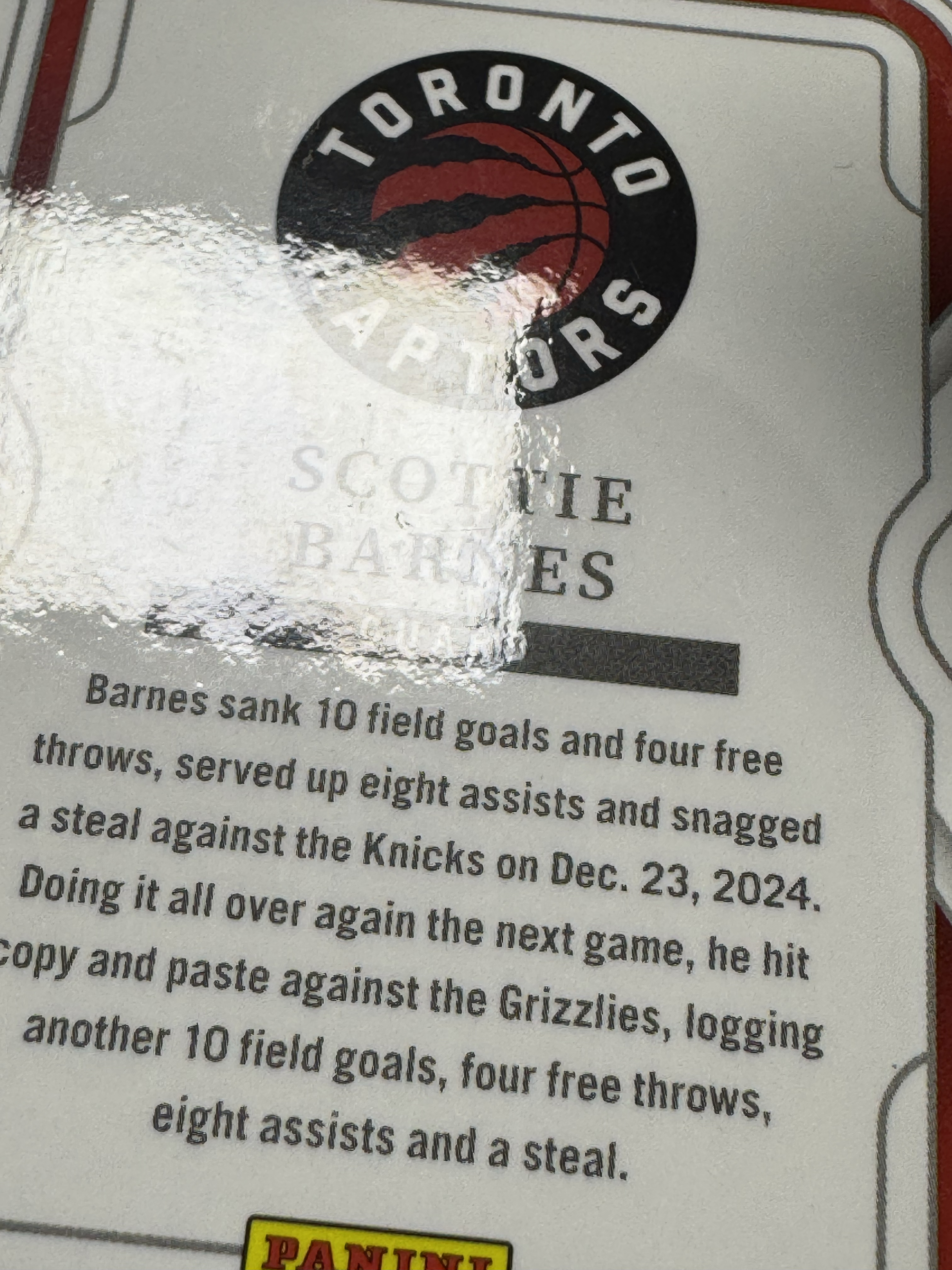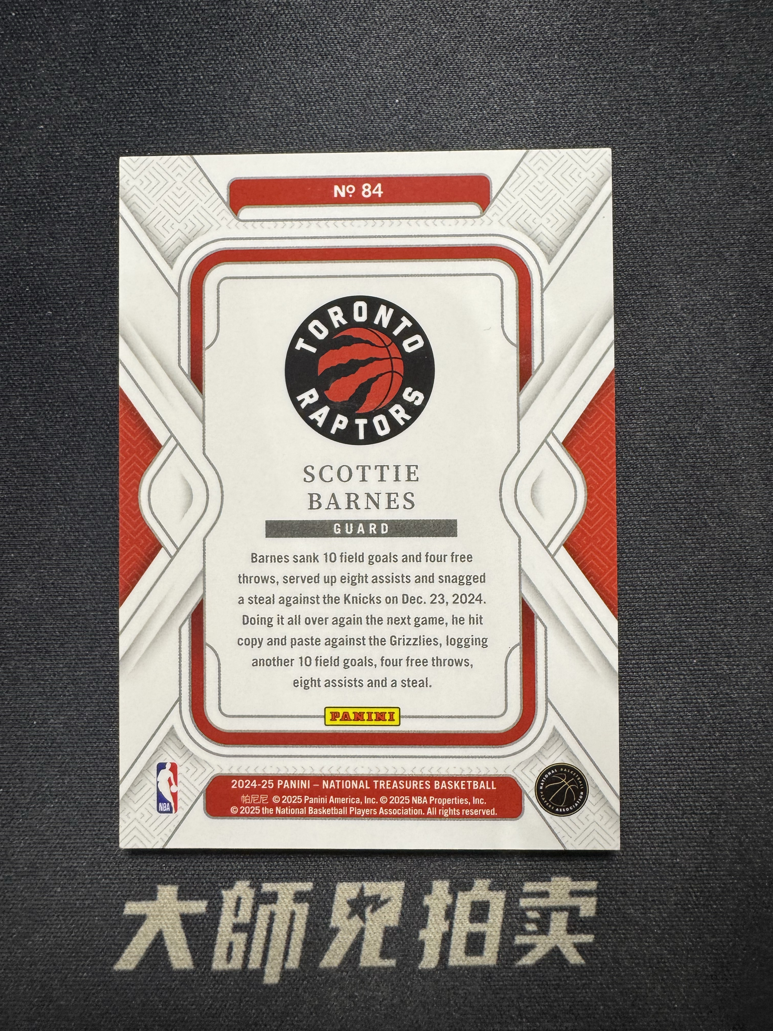 【大师兄拍卖】2024-25 panini national SCOTTIE BARNES 猛龙 斯科蒂 巴恩斯 国宝 /15编 base 瑕疵看图 -李译嘉-