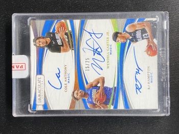 【关于卡品】:①出价即认同品相详情及拍卖规则,概不退换;②签字墨迹及卡片品相均如图,请看清楚细节图再拍,图片很清楚,需要细节图请提前咨询站内信或VX;③折射系列经常会有一道横线印刷线是出品印刷问题,不属于卡品残次范畴。国宝、IMM、NOIR等厚卡有轻微白边白角属于正常现象!镜面系列等卡面轻印划痕、印刷自带痕迹或覆膜不平起泡等卡片自身问题均为通行品。老卡有白边白角属于正常卡品。评级卡砖上的划痕和破损以及评级砖内的卡有卡品问题一律不属于品相问题。PZ、OP等各种折射系列表面的轻微划痕为正常卡品。关于以上卡品问题请确认无误再出价,介意者勿拍,要评级追求金标和10分者请直接购买评级卡。④快递过程中如出现包装破损、暴力变形、遗失等问题,请自行联系顺丰客服处理理赔,提供购买订单记录和物流记录给顺丰即可,如有高价卡有保价需求,请主动联系我们!⑤所有多卡打包lots标均不保卡品,品控和艺术家勿扰,感谢理解!【任何疑问请添加咨询VX:cglgzh01】