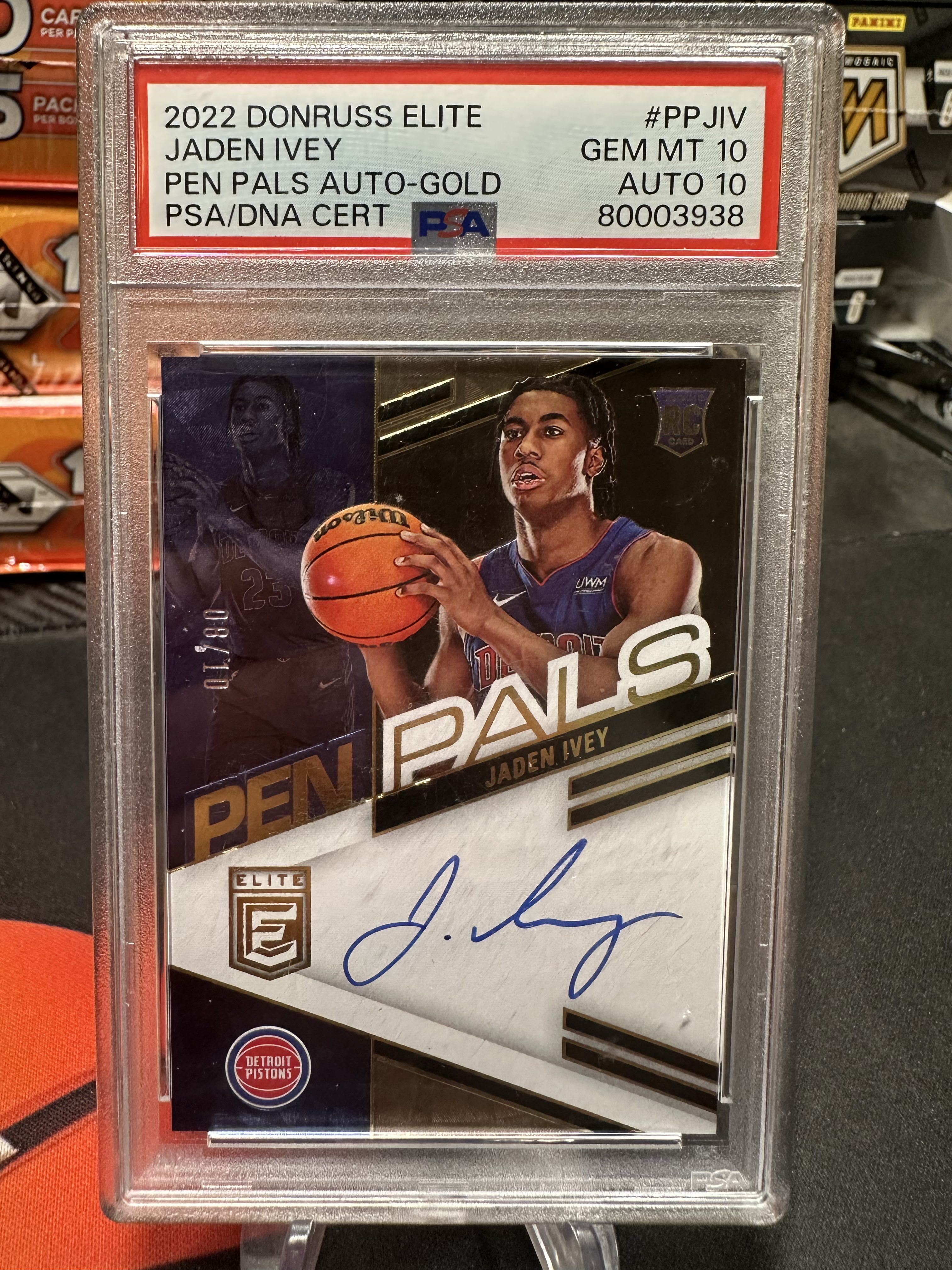 2022 Panini DONRUSS ELITE PEN PALS AUTOGRAPH Jaden Ivey RC 杰登 艾维 新秀年 精英系列 08/10编 PSA 双十 完美卡品 !起飞!