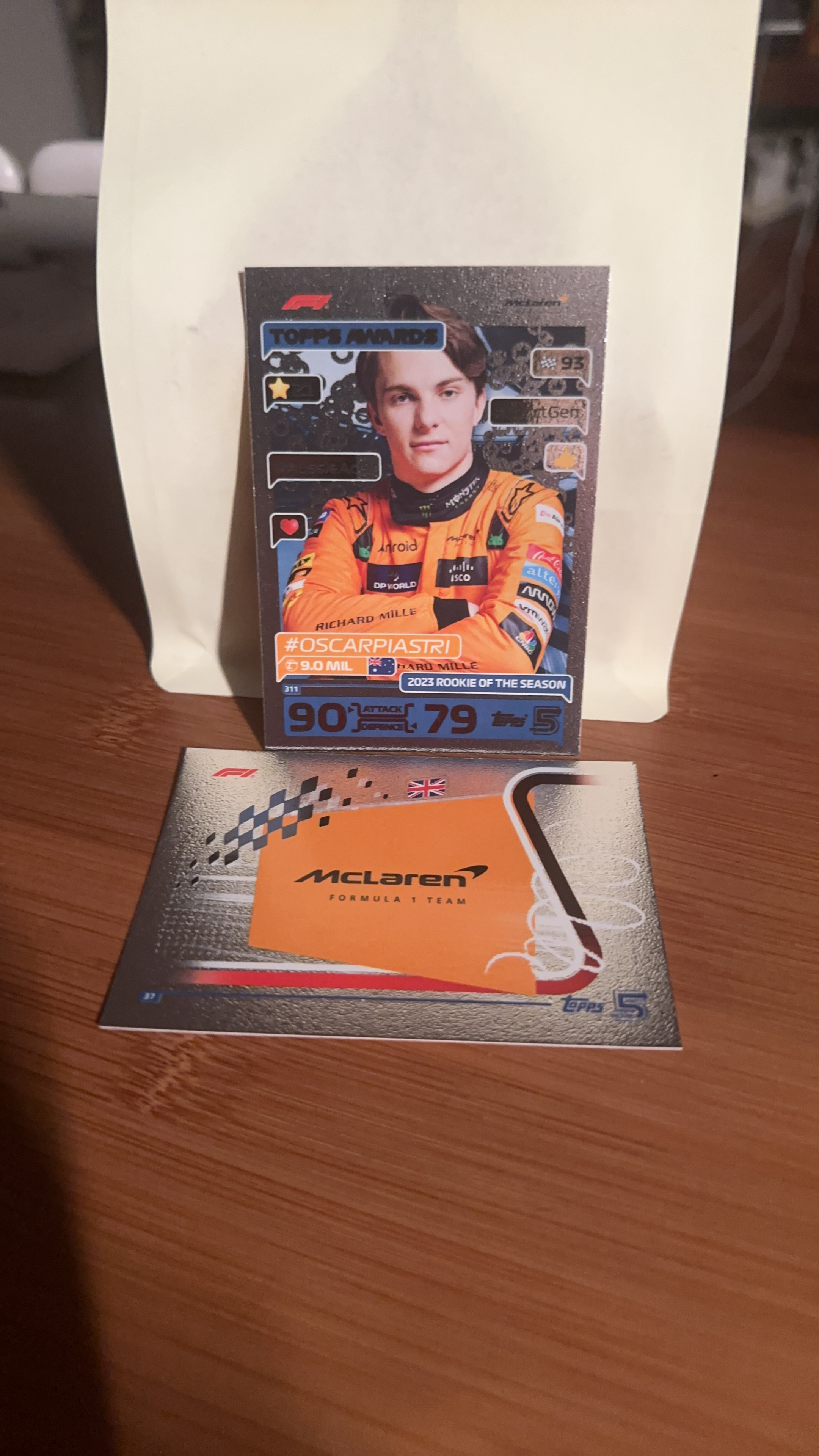 2024 Topps Turbo Attax Oscar Piastri 81 皮亚斯特里 迈凯轮 车标 Topps Awards ins风 社交宠儿 银折