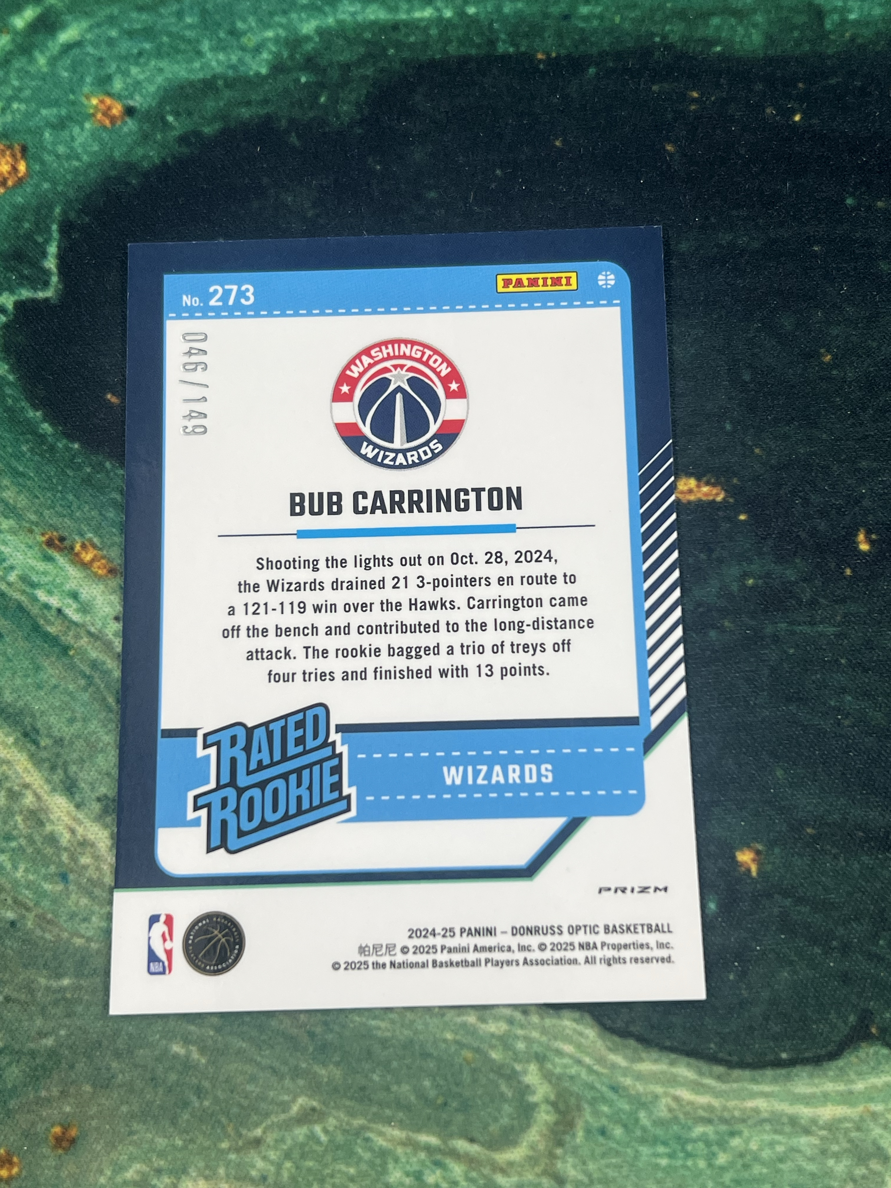 24-25 Panini Optic 奇才 卡林顿 新秀RC 149编  折射 绿折  【拍前请看描述】非评级满分卡,均默认会有瑕疵,介意勿拍。(id:羽仁)