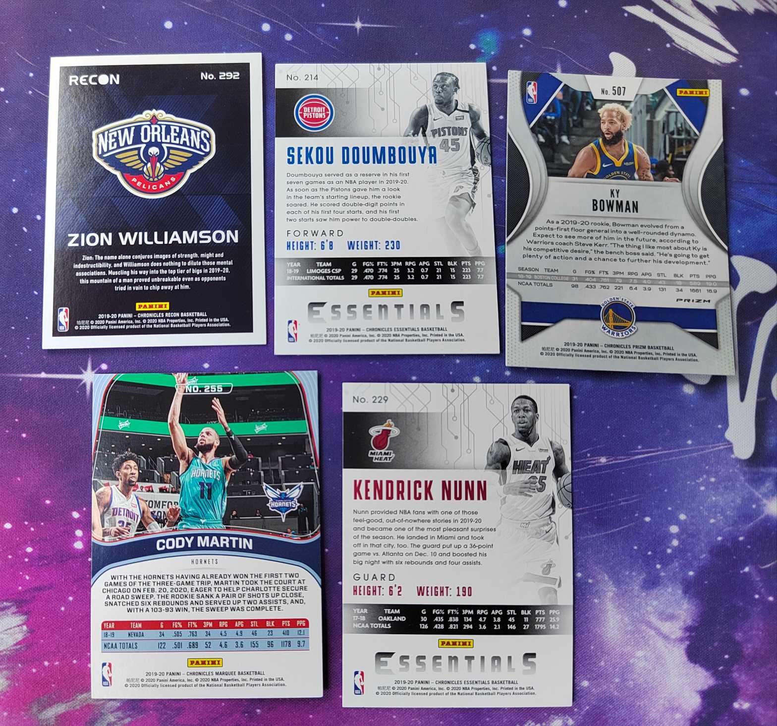 2019-20 Panini Chronicles Zion Williamson RC 锡安威廉姆斯 敦布亚 凯鲍曼 科迪马丁 纳恩 新秀 折射 银折 特卡 多系列 凑套收藏Lot 5张 打包不保卡品