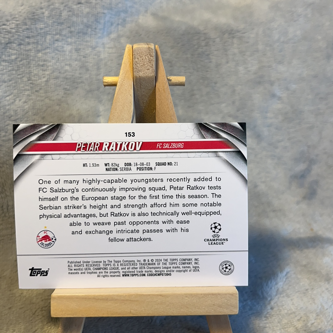 2024 Topps UEFA Champions League Petar Ratkov 拉特科夫 萨尔茨堡红牛 萨牛 欧冠 RC新秀 冠军 碧玉 折射 特卡 收藏必备