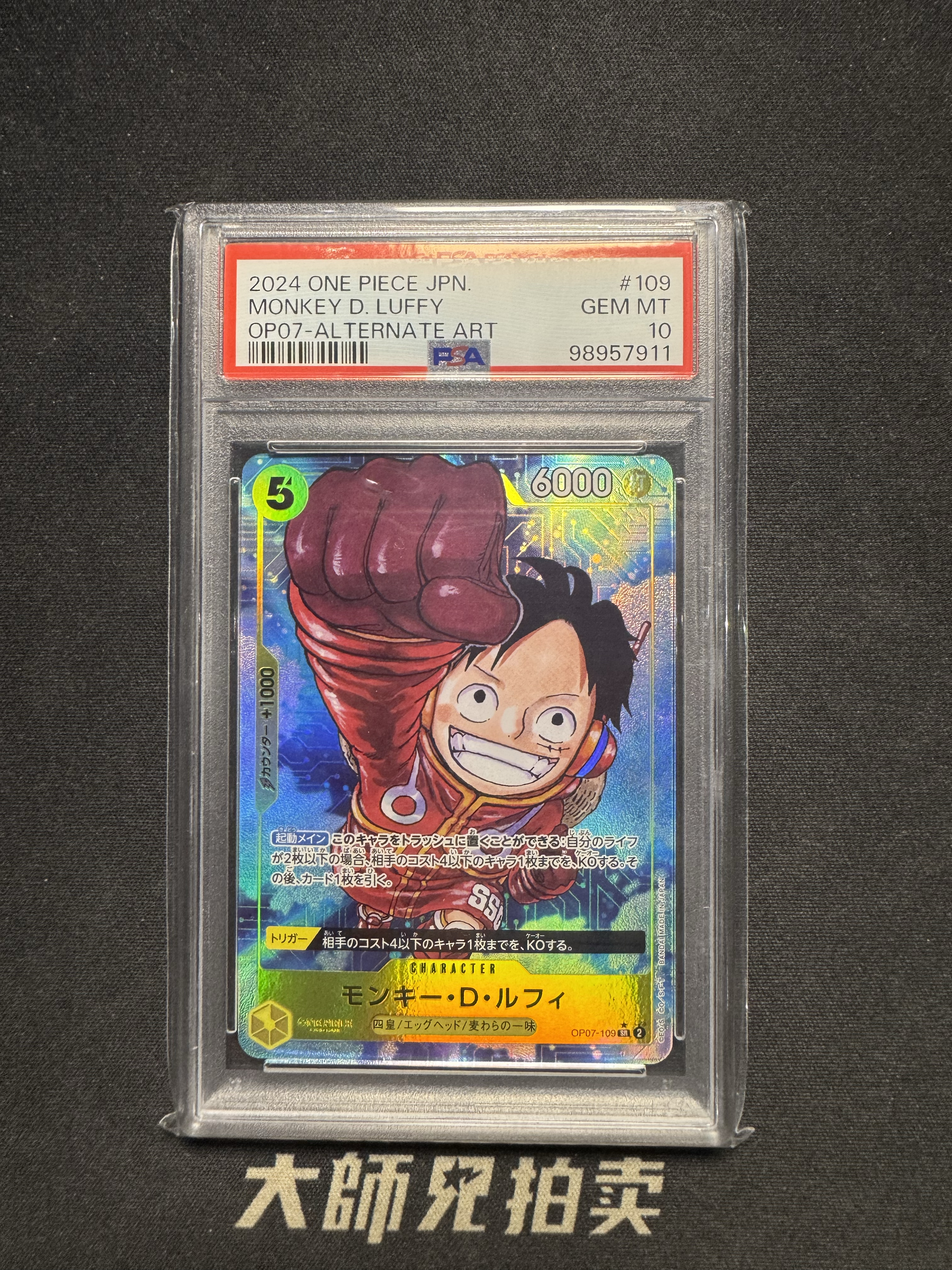 【大师兄拍卖】2024 ONE PIECE TCG 500年后的未来 蒙奇.D.路飞 chs 海贼王 简中 #OP07-109 SR 全图手绘 全图闪 异画 罕卡 psa10分 -Jk-