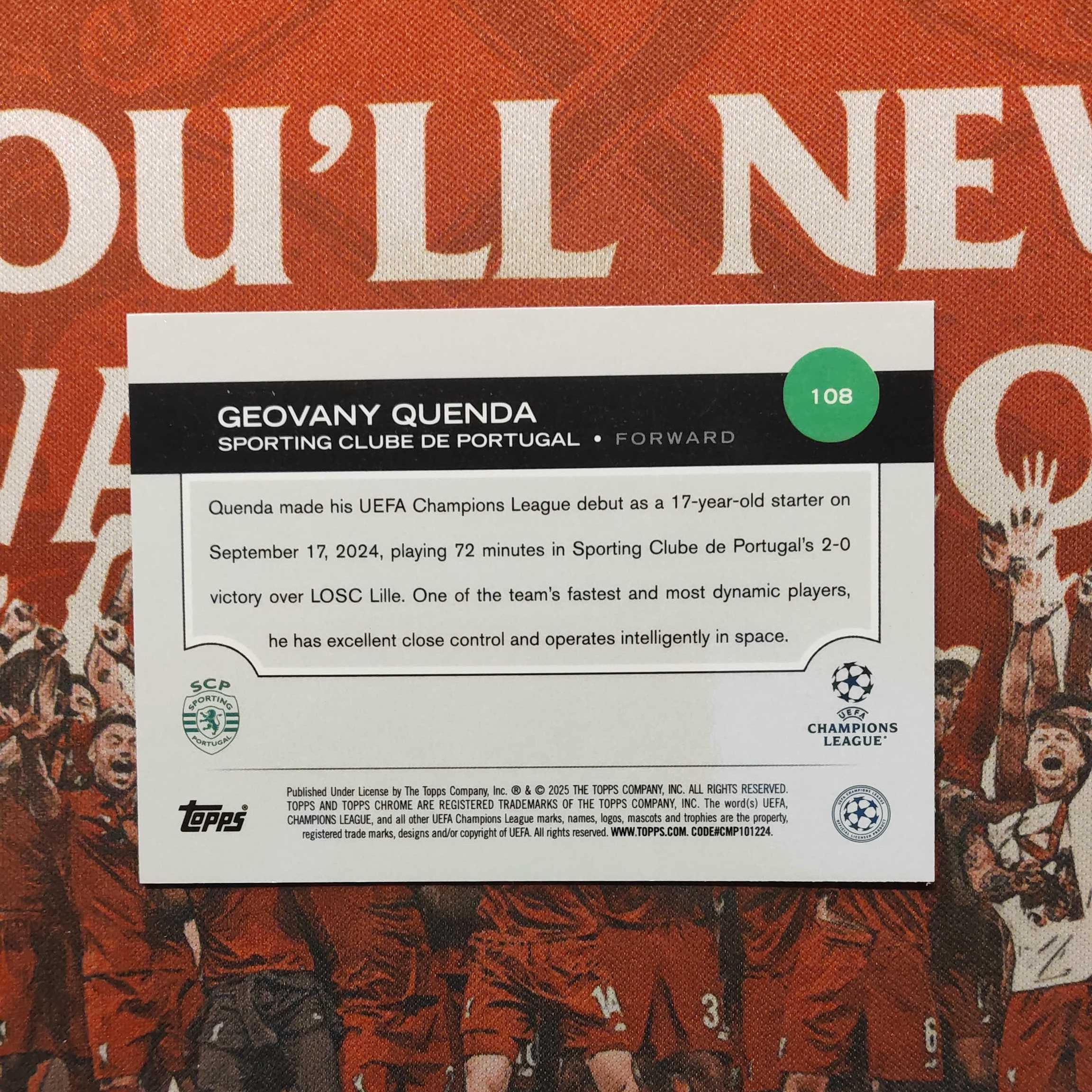 2025 Topps UEFA Champions League 坤达 RC 利记小铺 欧冠tc 葡萄牙体育 昆达 新秀RC 粉棱镜折175编 149/175 卡品如图 潜力前锋 葡萄牙 鸭哥