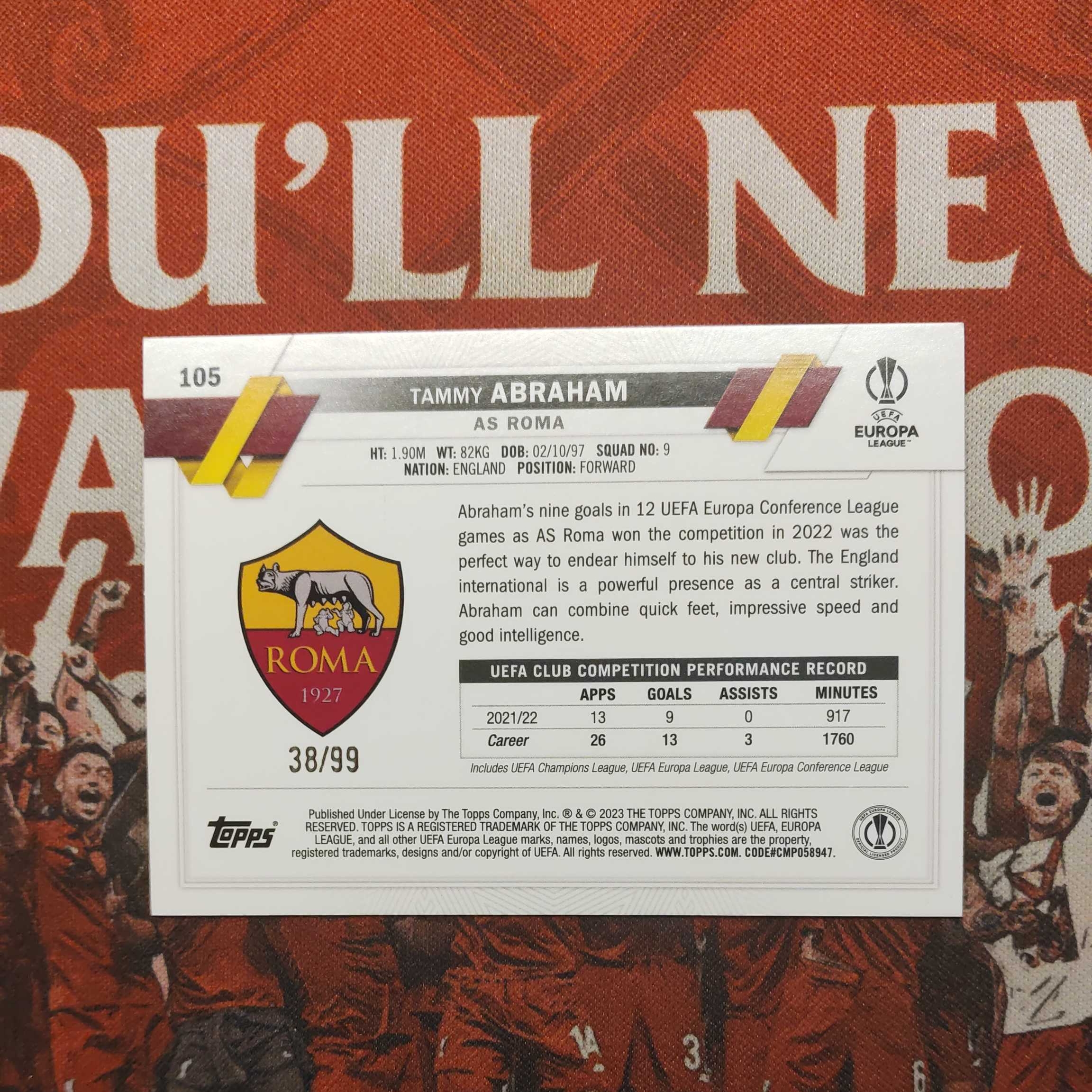 2023 Topps UEFA Champions League Tammy Abraham 利记小铺 欧冠碧玉 意甲 罗马 亚伯拉罕 白玉折99编 38/99 卡品如图 英格兰