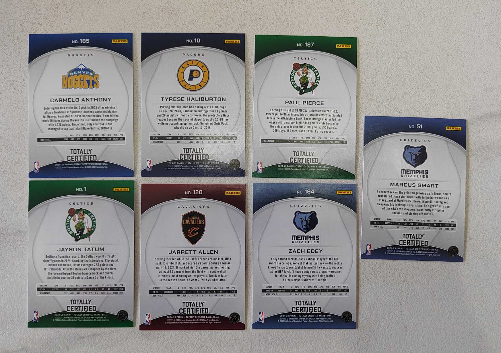 2024-25 Panini Totally Certified Carmelo Anthony 安东尼 哈利伯顿 皮尔斯 塔图姆 扎克埃迪等 普卡Base 红平行 凑套 Lot 7张 打包不保卡品