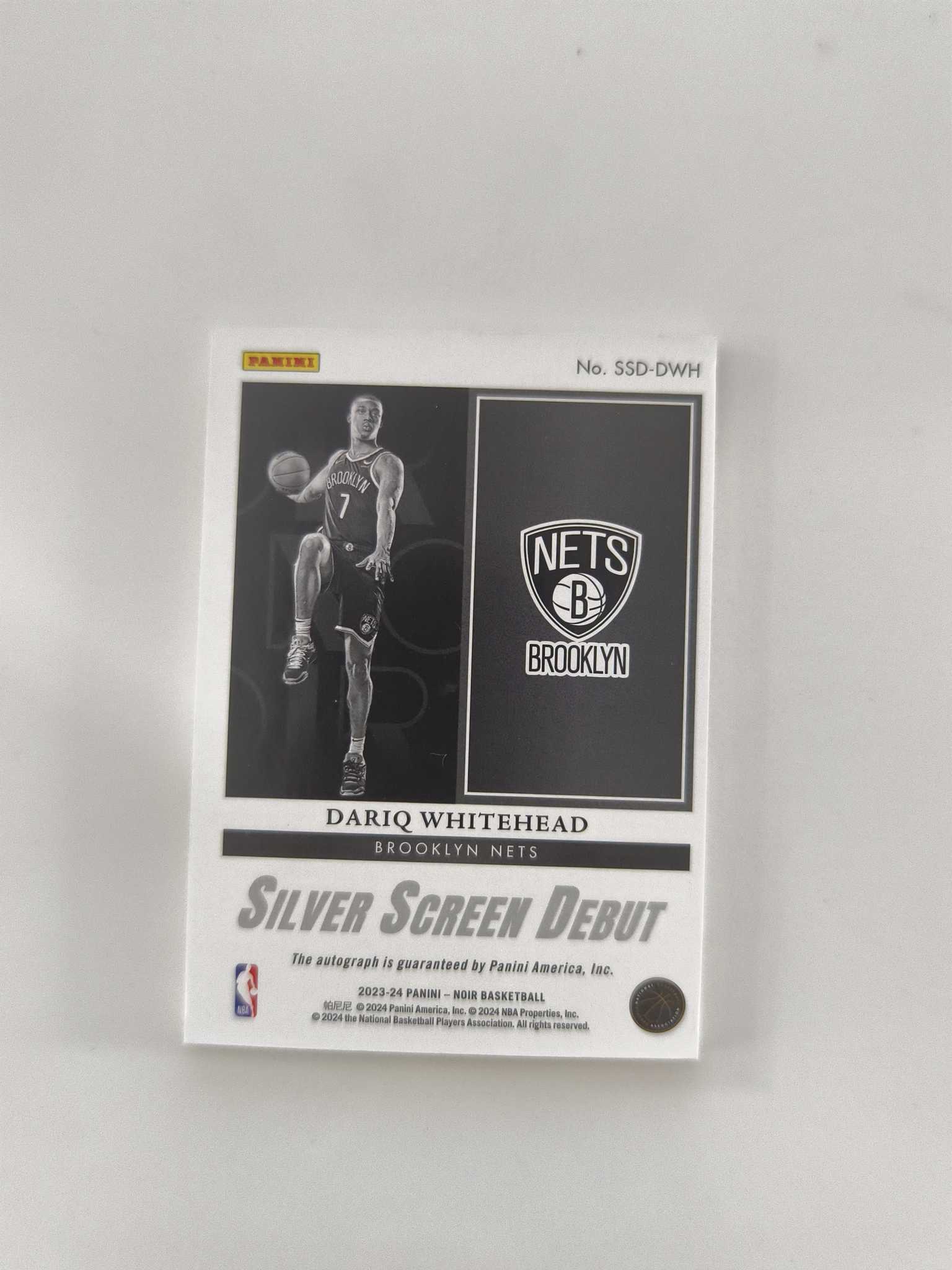 2023-24 panini noir dariq whitehead 诺尔 篮网 达里克 怀特黑德 rc 新秀 签字 卡签 荧幕首秀签 /75编 闪版 专收必备