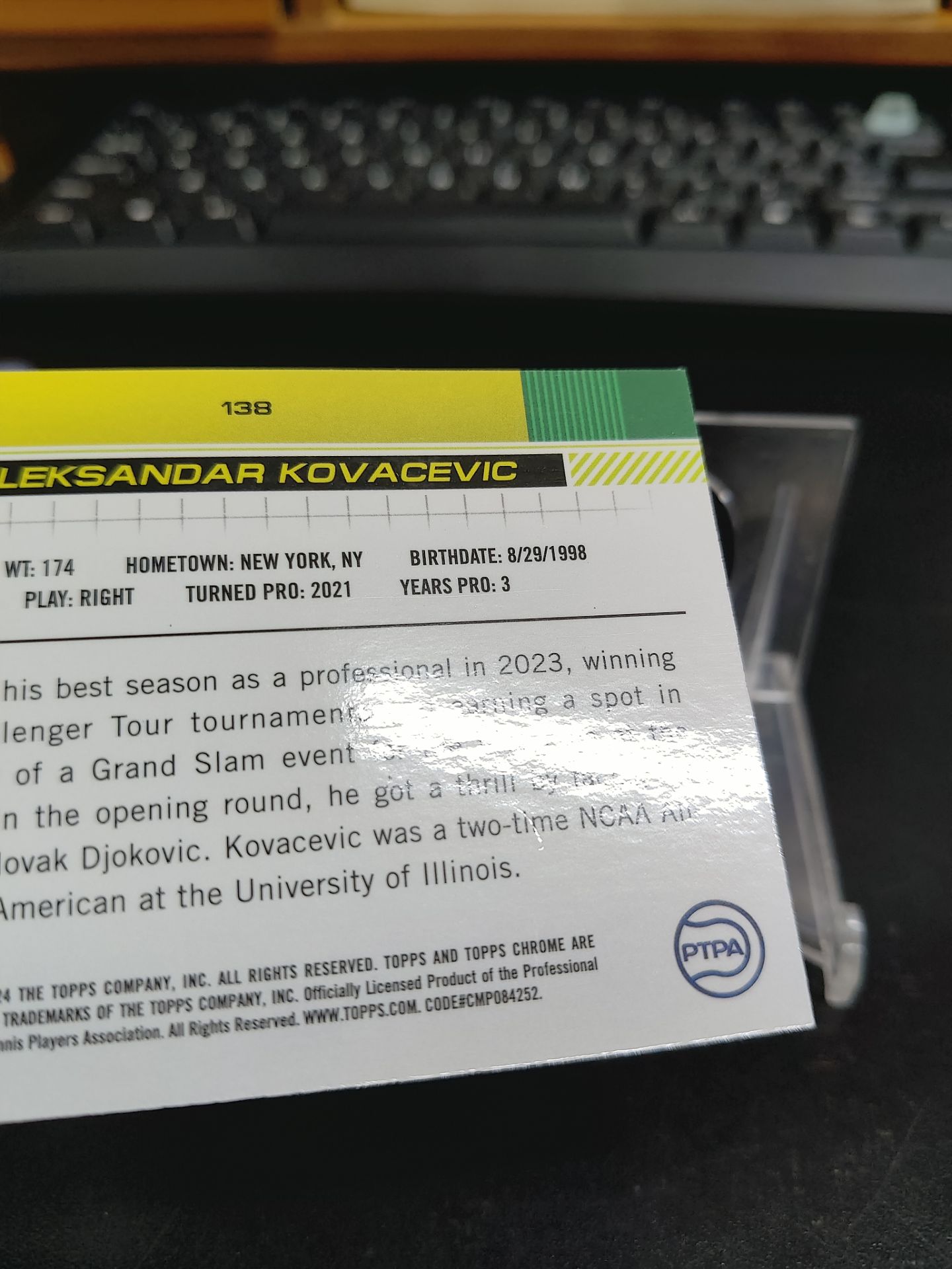 【浩行拍卖 截标预付82%】2024 topps Chrome aleksandar kovacevic 网球 亚历山大 科瓦切维奇 rc 新秀 金折 折射 40/50编 专收必备 瑕疵看图「雪兮」0917M01夢