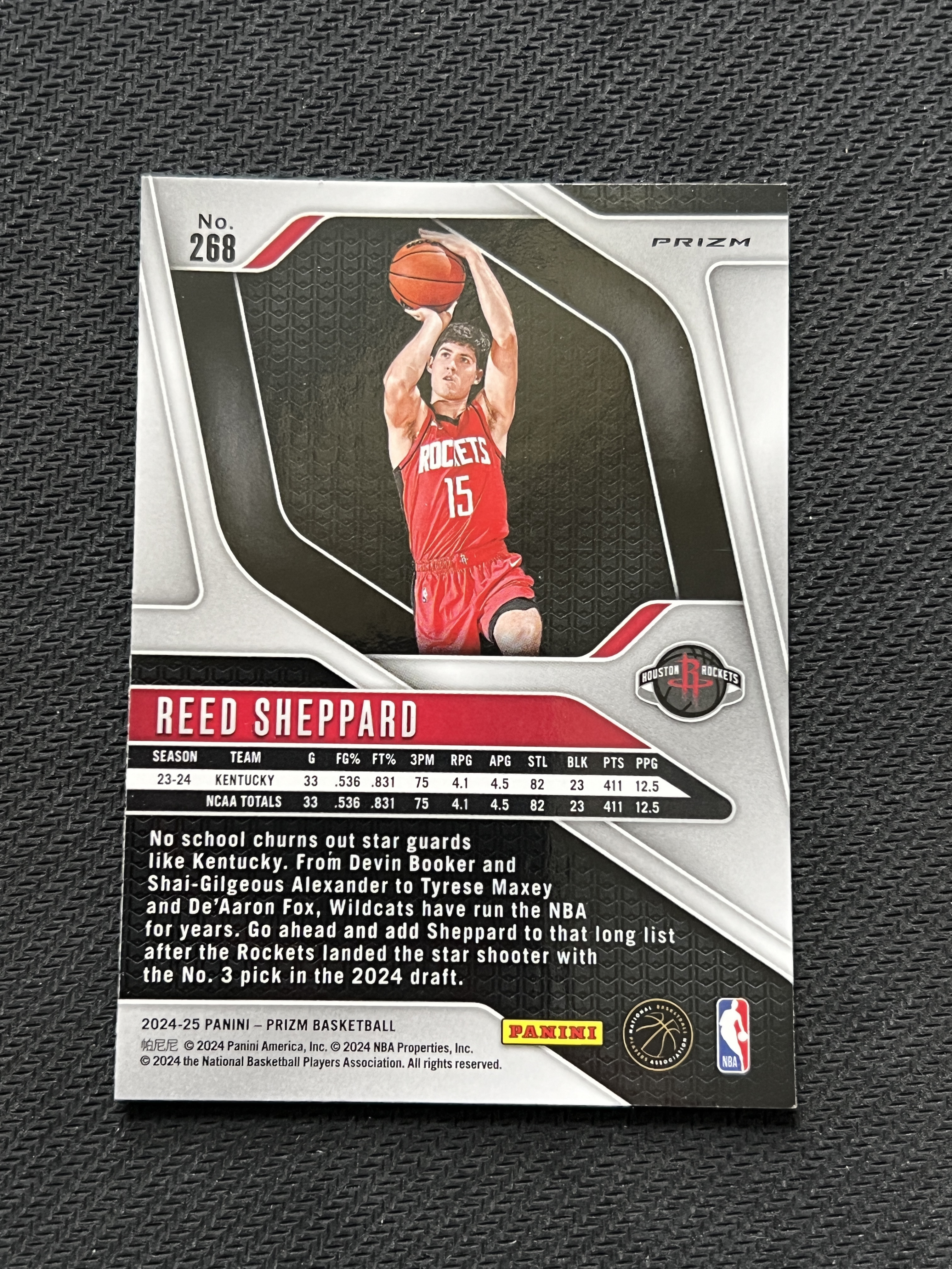 2024-25 Panini Prizm Reed Sheppard RC PZ 中国版 火箭 新秀 里德 谢泼德 银折 折射 中文 正Base 卡品如图 【蟹Bro卡铺】
