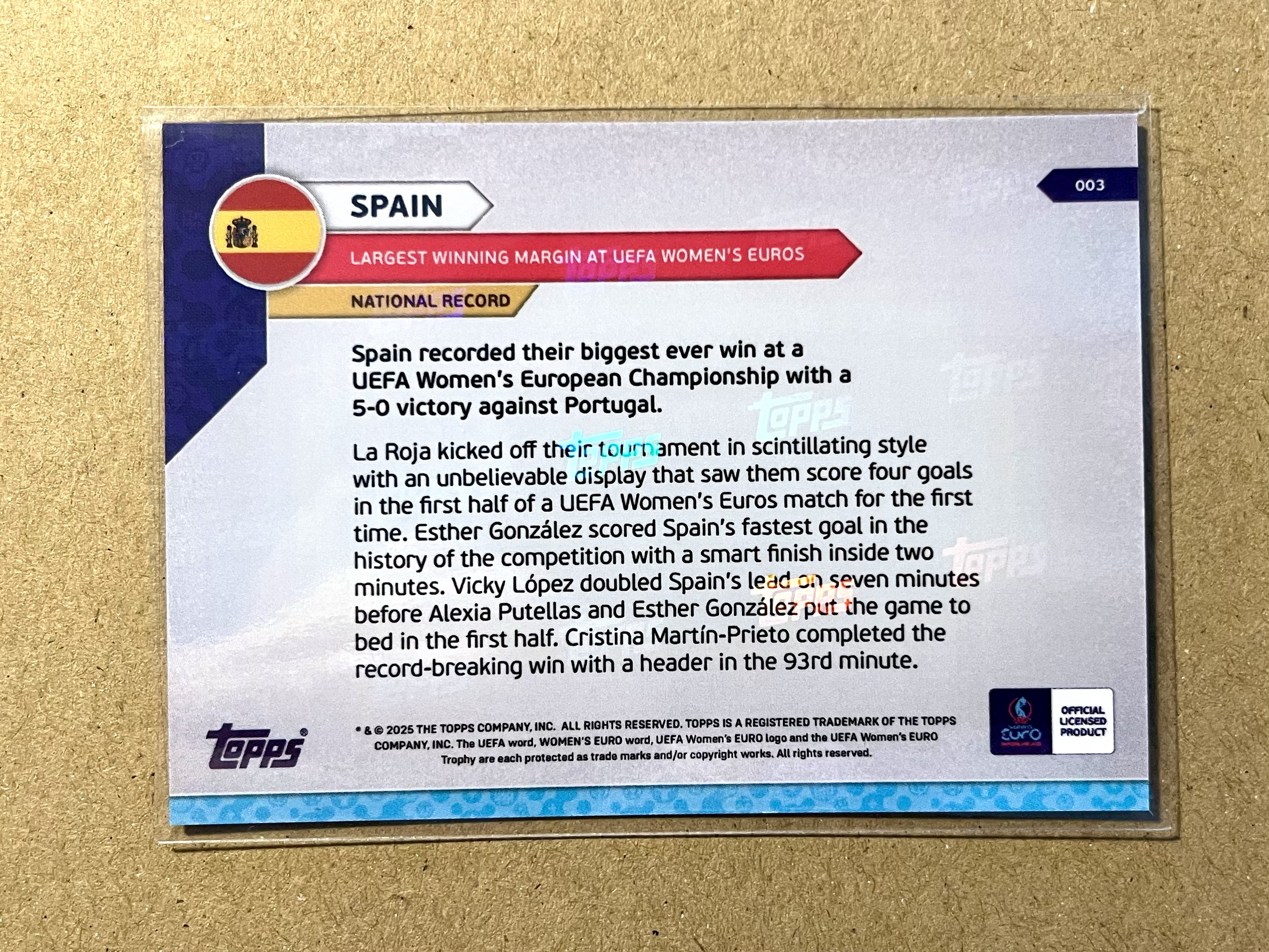2025 Topps 【蓝矿】 Spain 西班牙 Topps now系列 欧洲杯女足 杯赛纪录:5球最大比分获胜纪录!邦马蒂 普特拉斯 帕拉略洛 皮纳等