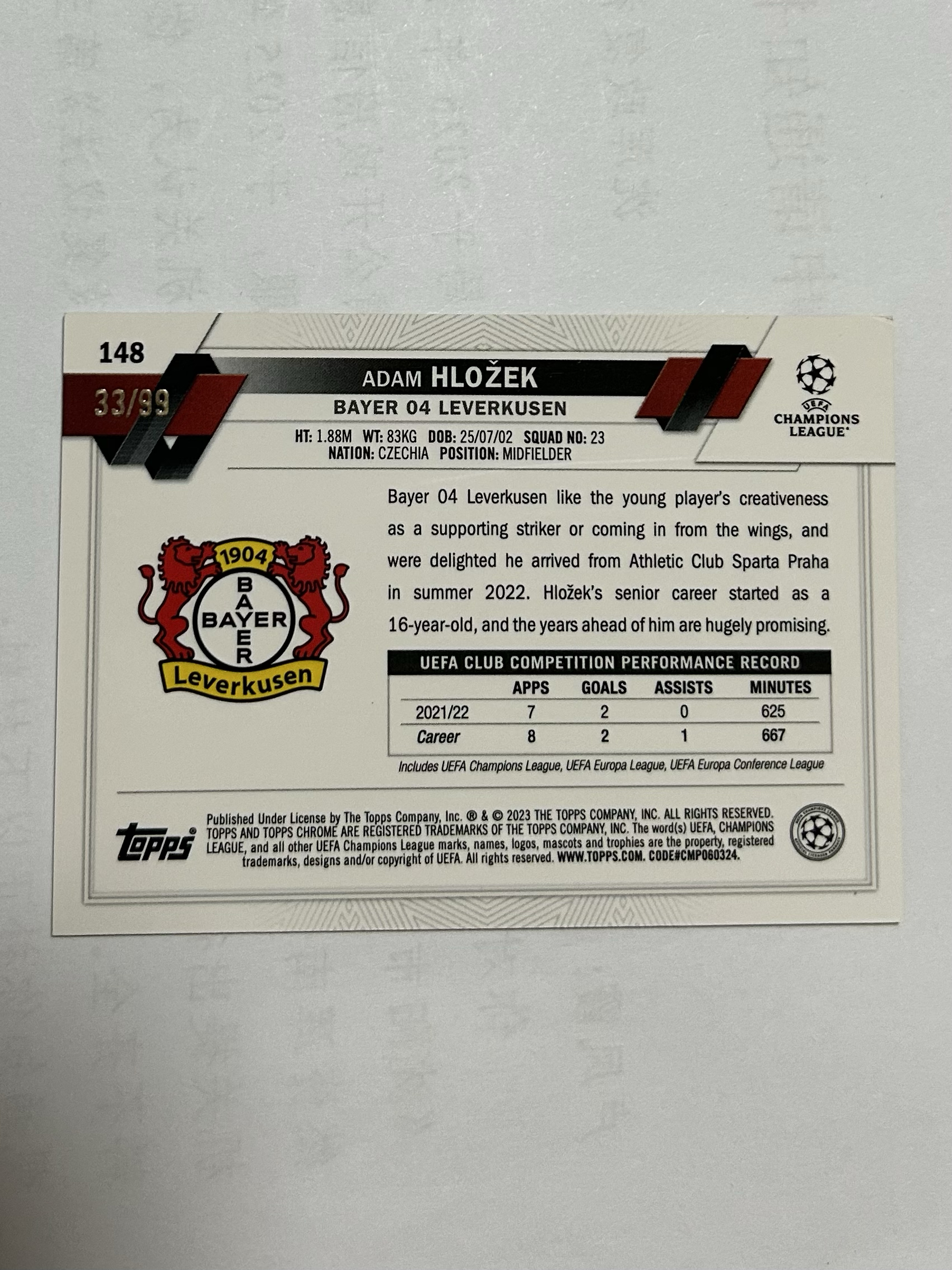 2022-23 Topps Chrome Adam Hlozek 欧冠 蓝宝石 Sapphire 亚当·赫洛泽克 勒沃库森 /99编 黄碎冰折 捷克 前锋 霍芬海姆