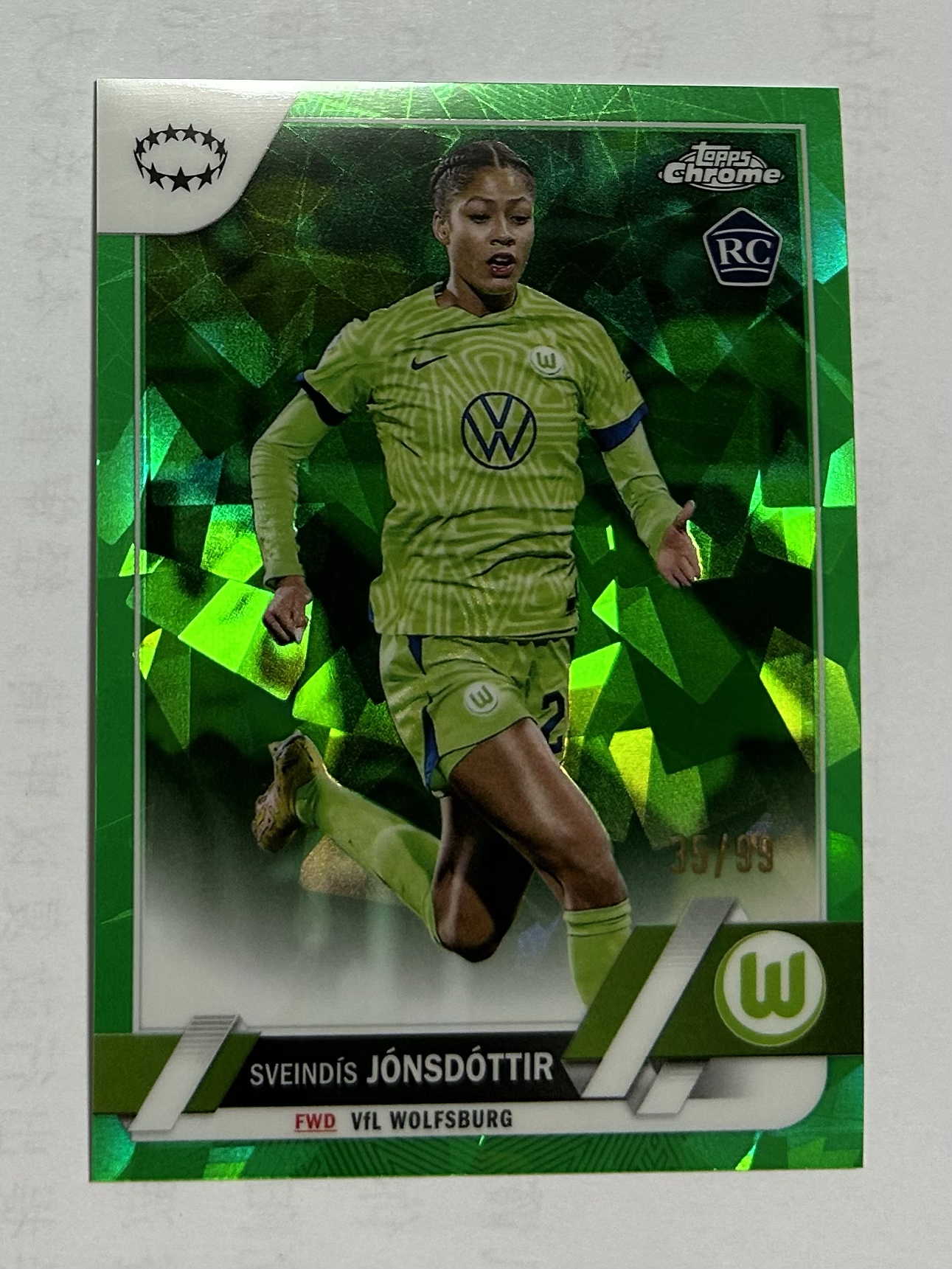 2022-23 Topps Chrome Sveindis Jonsdottir RC 欧冠 蓝宝石 女足 Sapphire 斯万迪斯·琼斯多蒂尔 沃尔夫斯堡 /99编 绿碎冰折 新秀 冰岛当家球星