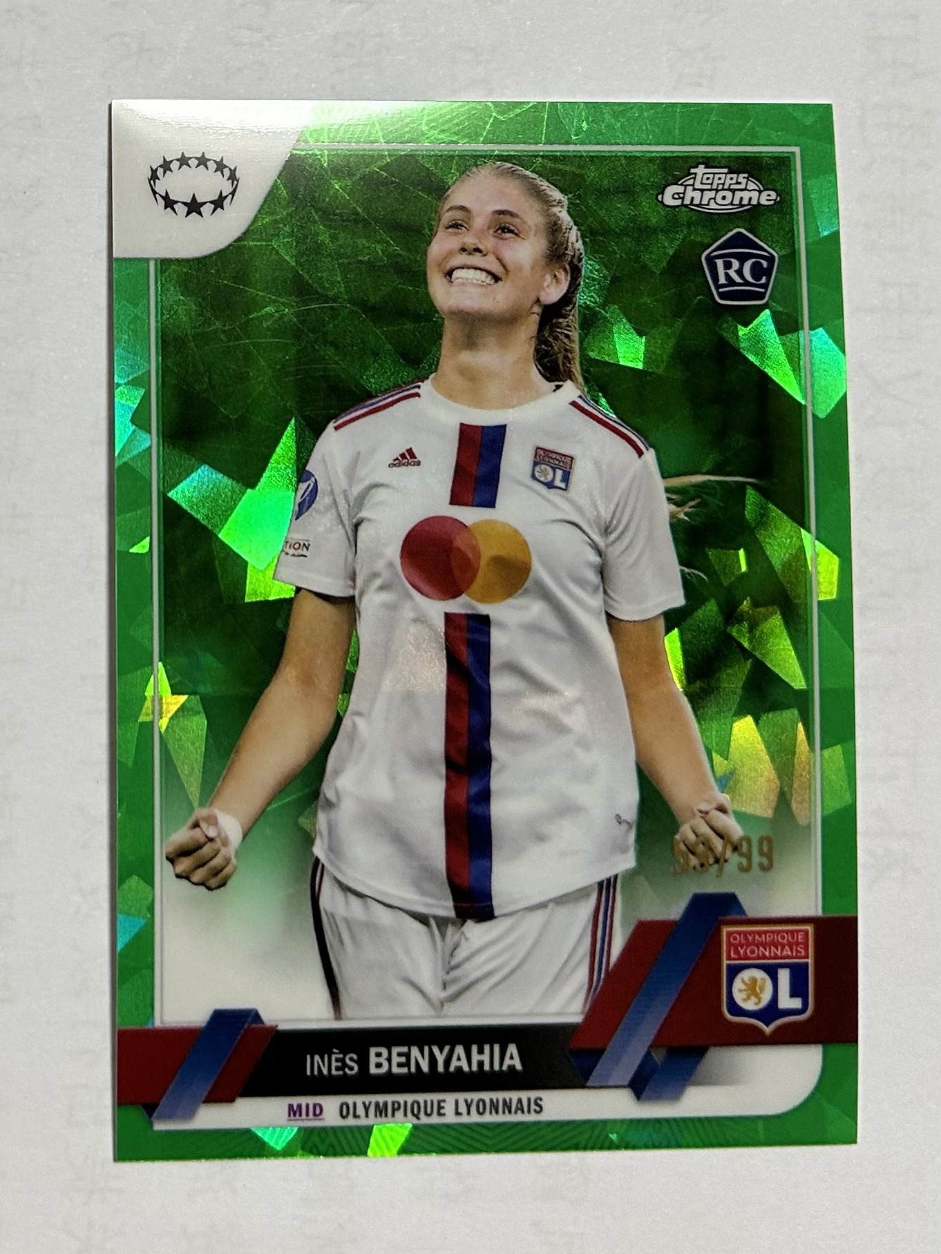 2022-23 Topps Chrome Ines Benyahia RC 欧冠 蓝宝石 女足 Sapphire 伊内斯 本亚希亚 本叶海亚 里昂 /99编 绿碎冰折 新秀 法国中场核心