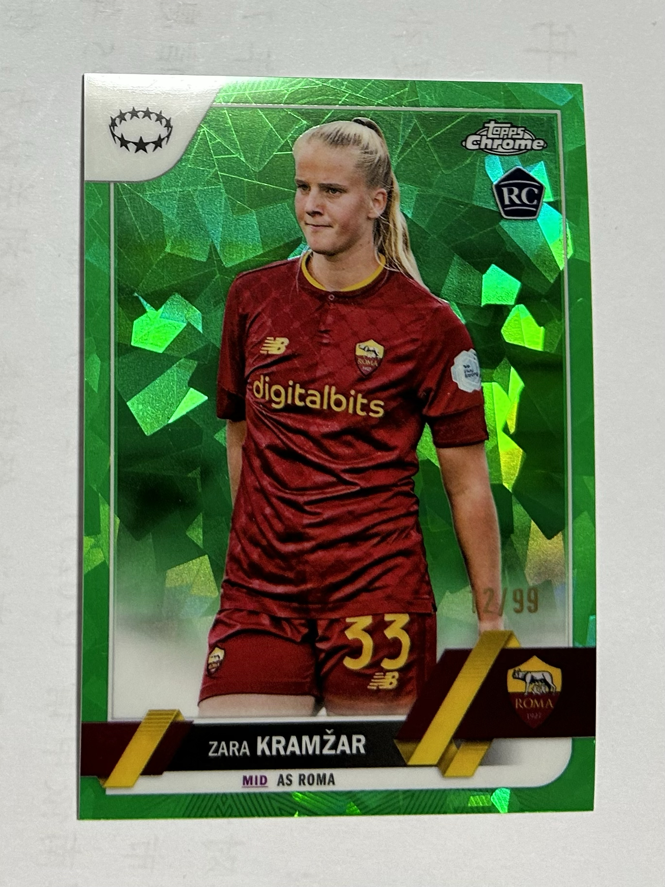 2022-23 Topps Chrome Zara Kramzar RC 欧冠 蓝宝石 女足 Sapphire 扎拉 克拉姆扎 罗马 /99编 绿碎冰折 新秀 19岁中场 未来可期