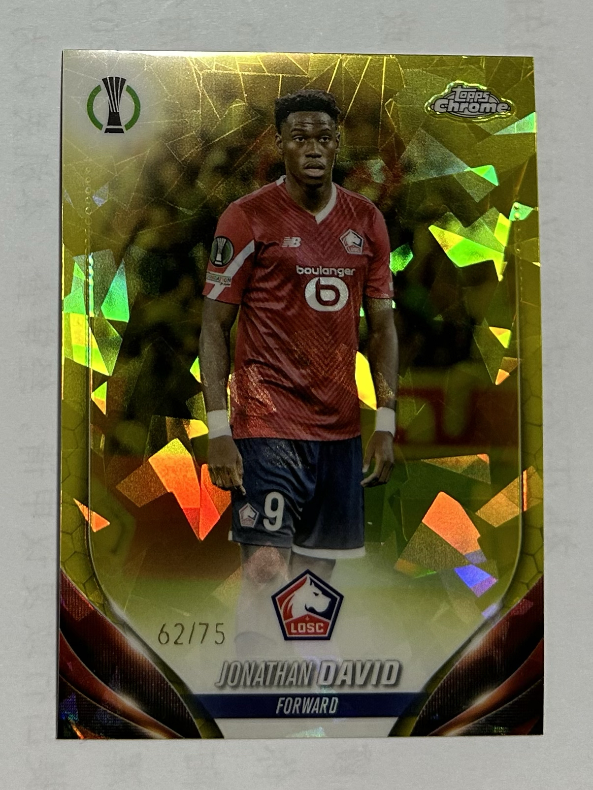 2023-24 Topps Chrome Jonathan David 欧冠 蓝宝石 Sapphire 乔纳森戴维 里尔 /75编 黄碎冰折 加拿大前锋 绝对核心 转会尤文图斯