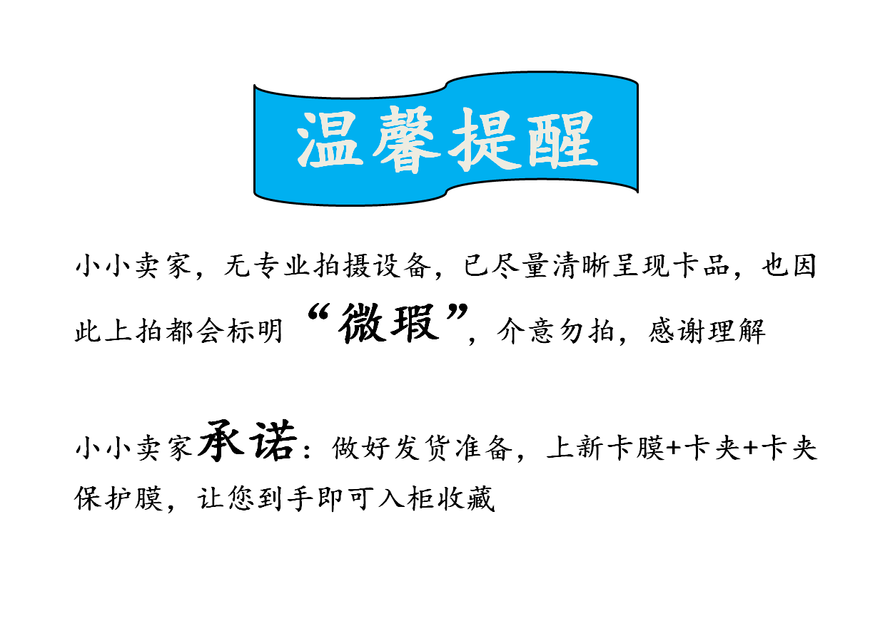 无专业拍摄设备,已尽量清晰呈现卡品,钢印有时会拍不清晰,但保证每个钢印绝对完好无缺,也因此上拍都会标明“微瑕”,介意勿拍,感谢理解~
