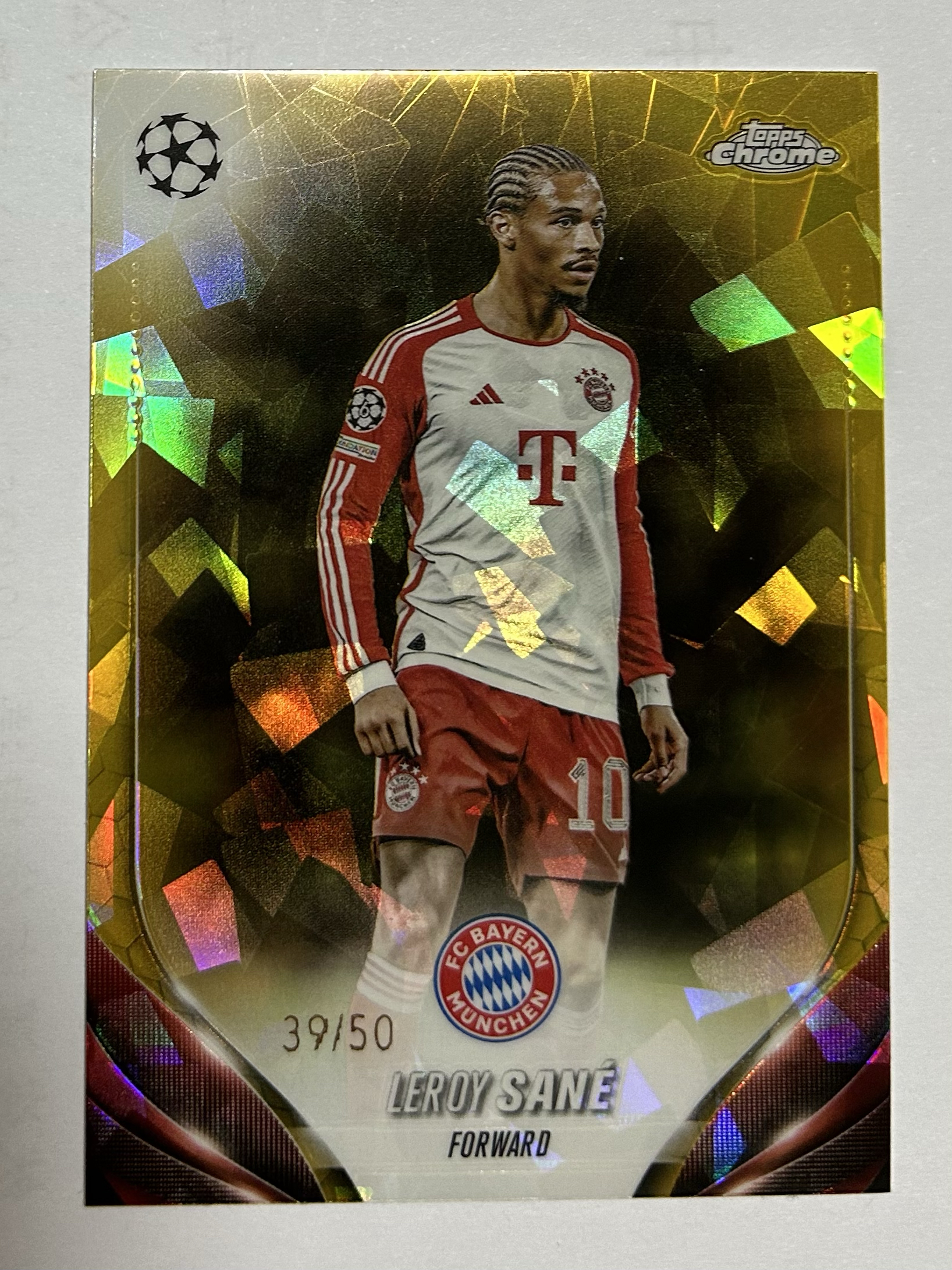 2023-24 Topps Chrome Leroy Sané 欧冠 蓝宝石 Sapphire 萨内 拜仁慕尼黑 /50编 金碎冰折 金折 德国
