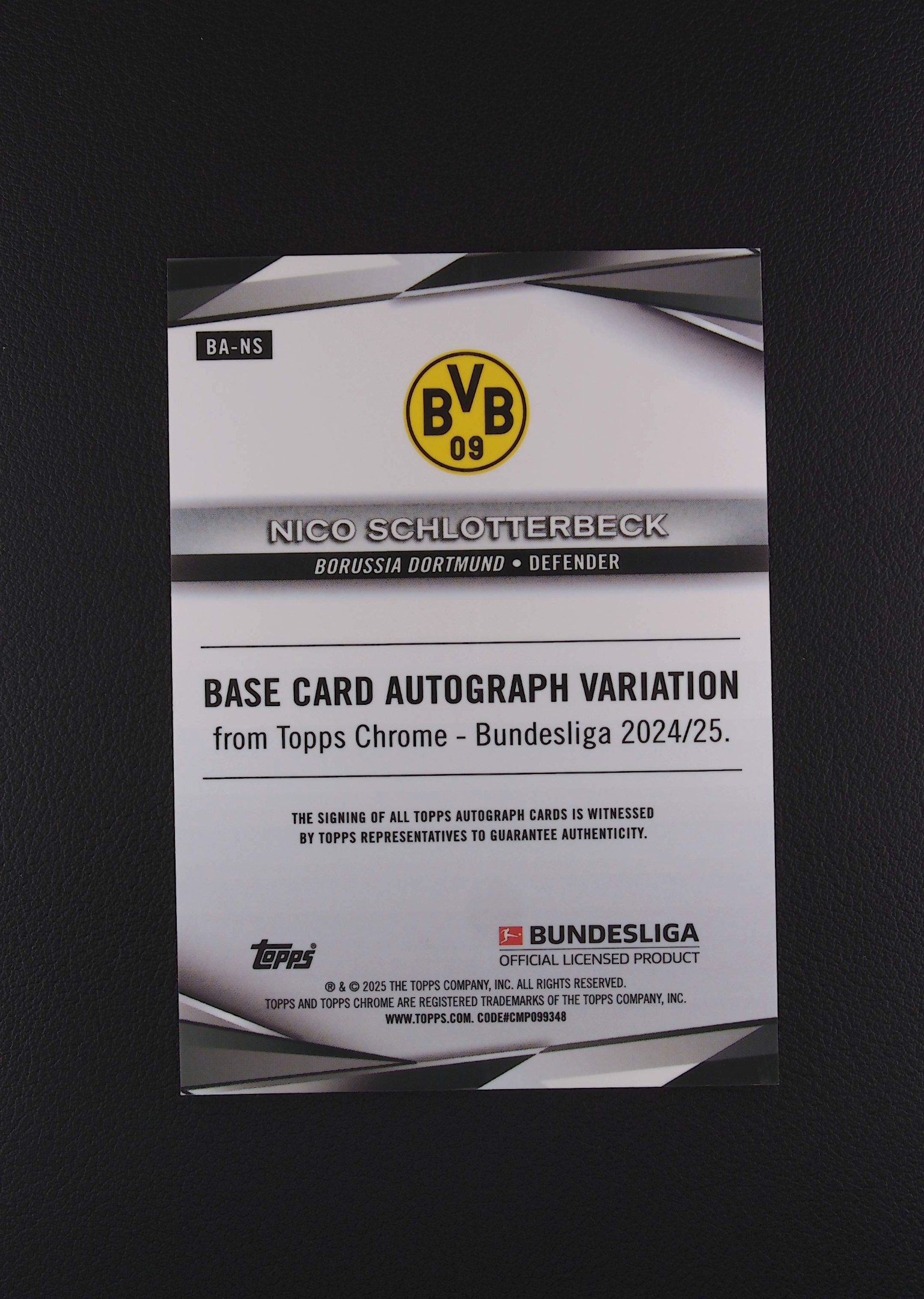 ![2024-25 Topps Chrome Nico Schlotterbeck [808零手续] 德甲 蓝宝石 TC 施罗特贝克 签字 蓝碎冰折 多特蒙德 凑套必备 卡品如图 赵诣](https://images.cardhobby.com/948f46a557144ec745ac5c3fbfe5b76c1758102898261.jpg)