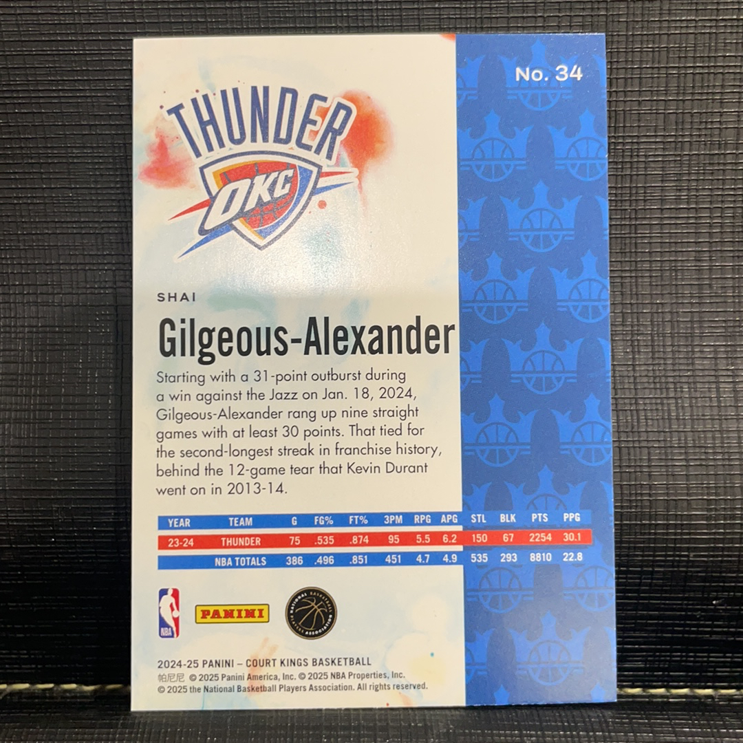 2024-25 Panini Court Kings Shai Gilgeous-Alexander 雷霆 吉尔杰斯 亚历山大🌺油画系列 恒久经典 不容错过🌺