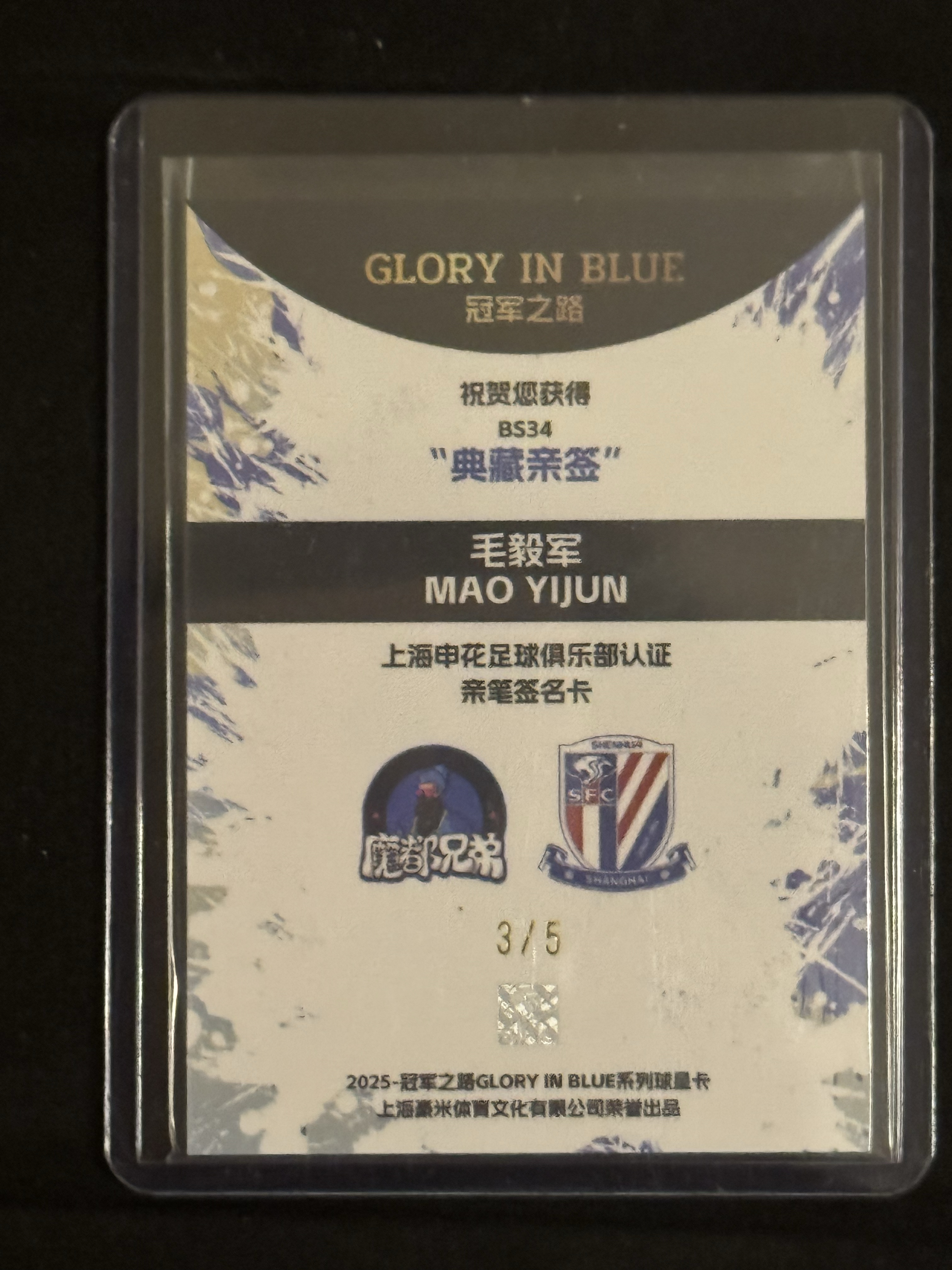 2025 上海豪米体育文化有限公司 冠军之路 GLORY IN BLUE 毛毅军 魔都兄弟 3/5编 红折 单人签 签字 卡签 典藏亲签 上海申花 【yys拍卖】
