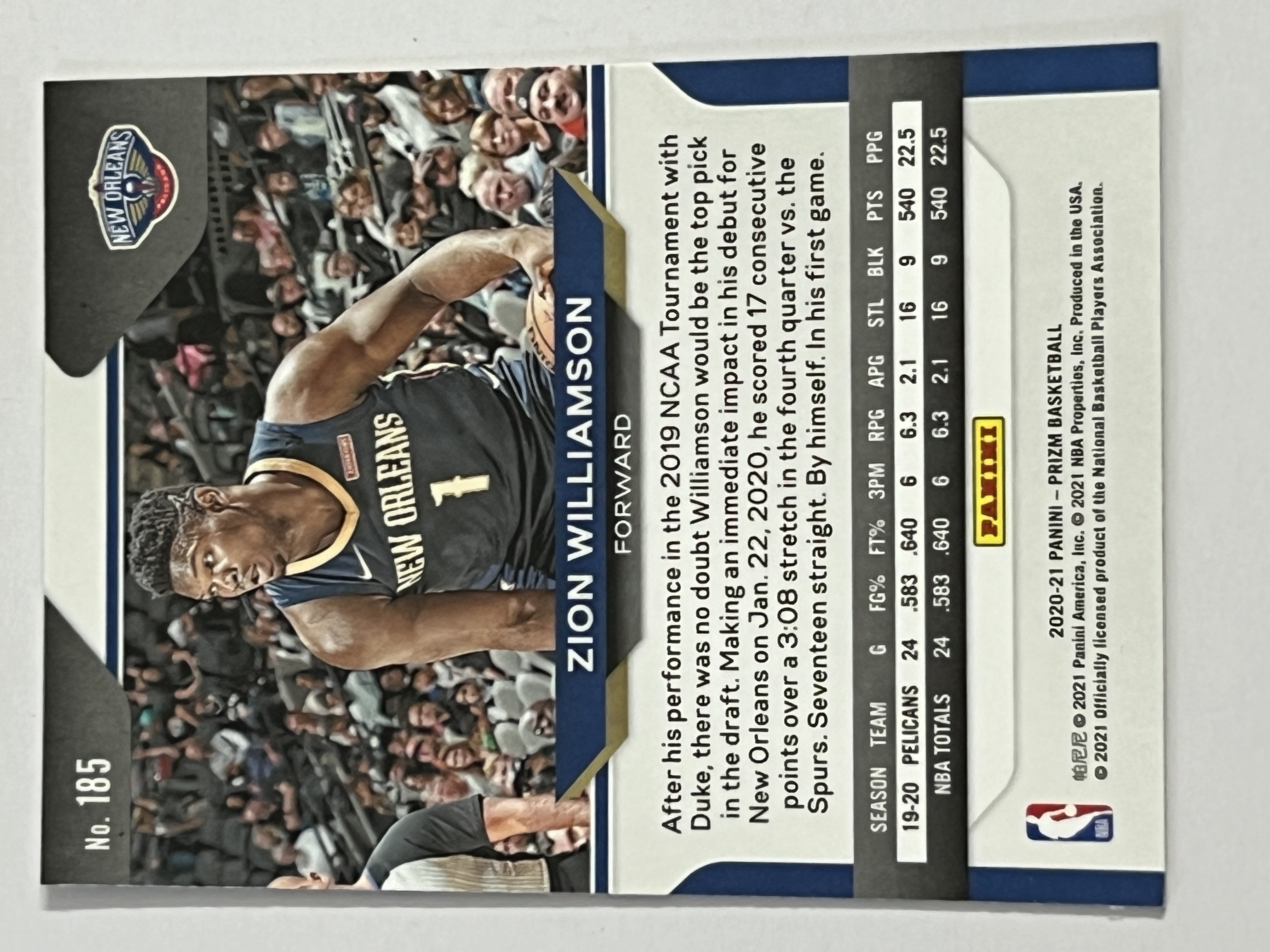 2020-21 Panini Prizm Zion Williamson 锡安 威廉姆森 胖虎 蔡恩 鹈鹕队 热门球星 收藏必备 可合并 #185