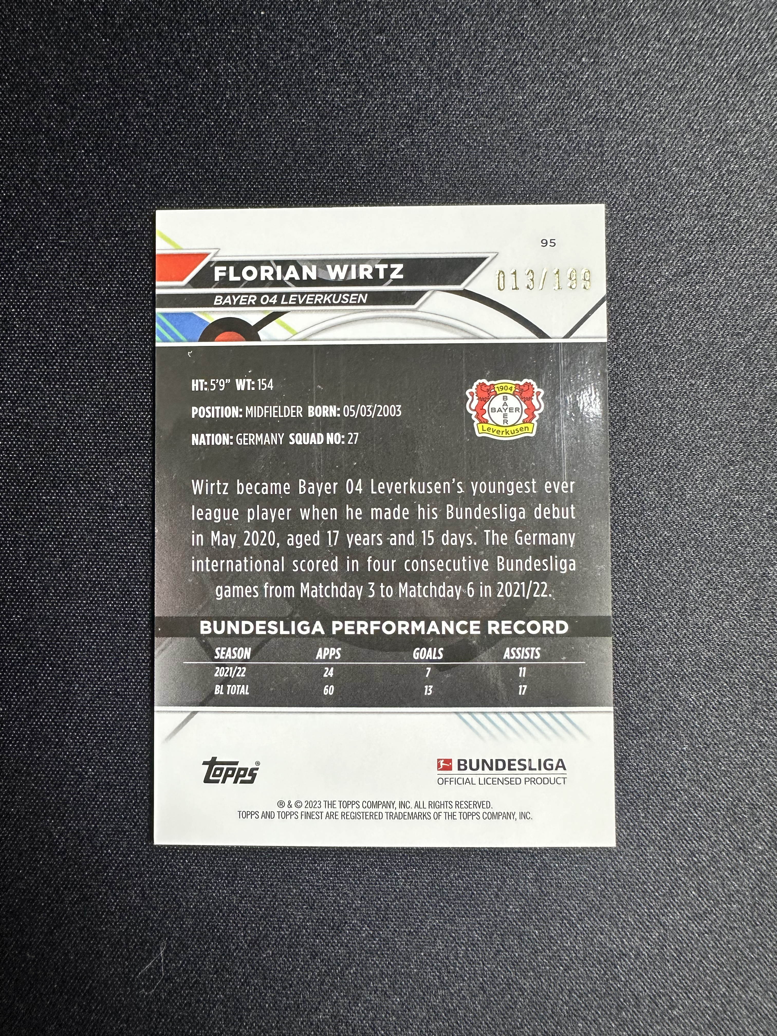2022-23 Topps Finest Florian Wirtz 德甲Finest 勒沃库森 利物浦 维尔茨 199编 卡片精美 收藏必备 刺客-落枫