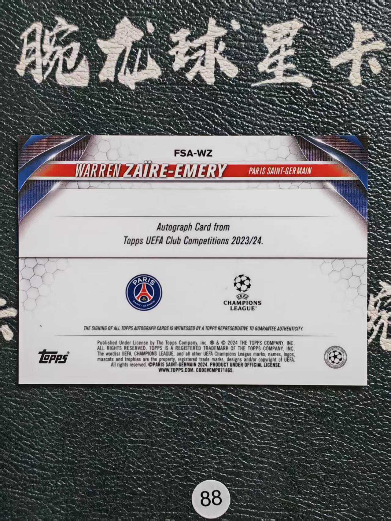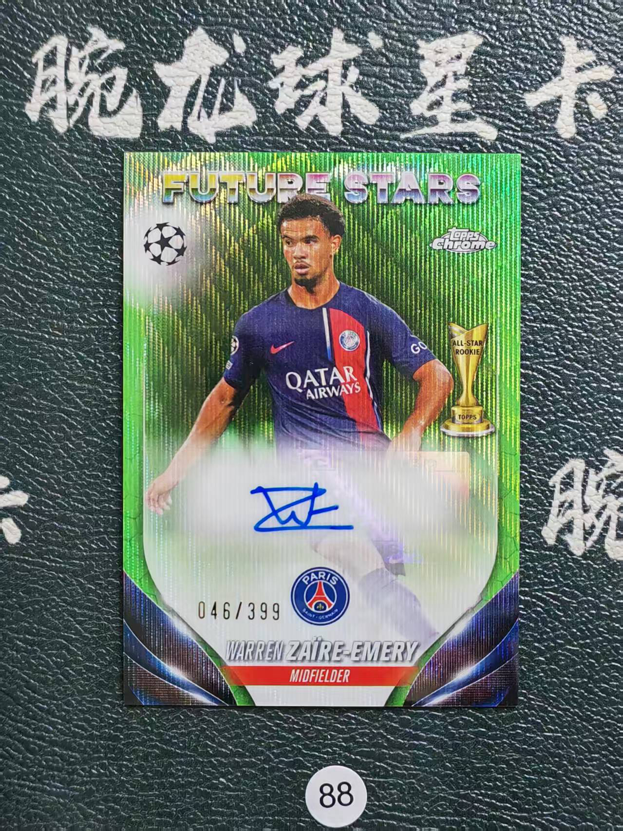2024 【腕龙拍卖 接代卖】 腕龙E总aa8 Topps Chrome 欧冠 TC 埃梅里 巴黎 法国 绿波纹折 46/399编 签字 Waeeen Zaire-Emery 卡品如图 收藏必备