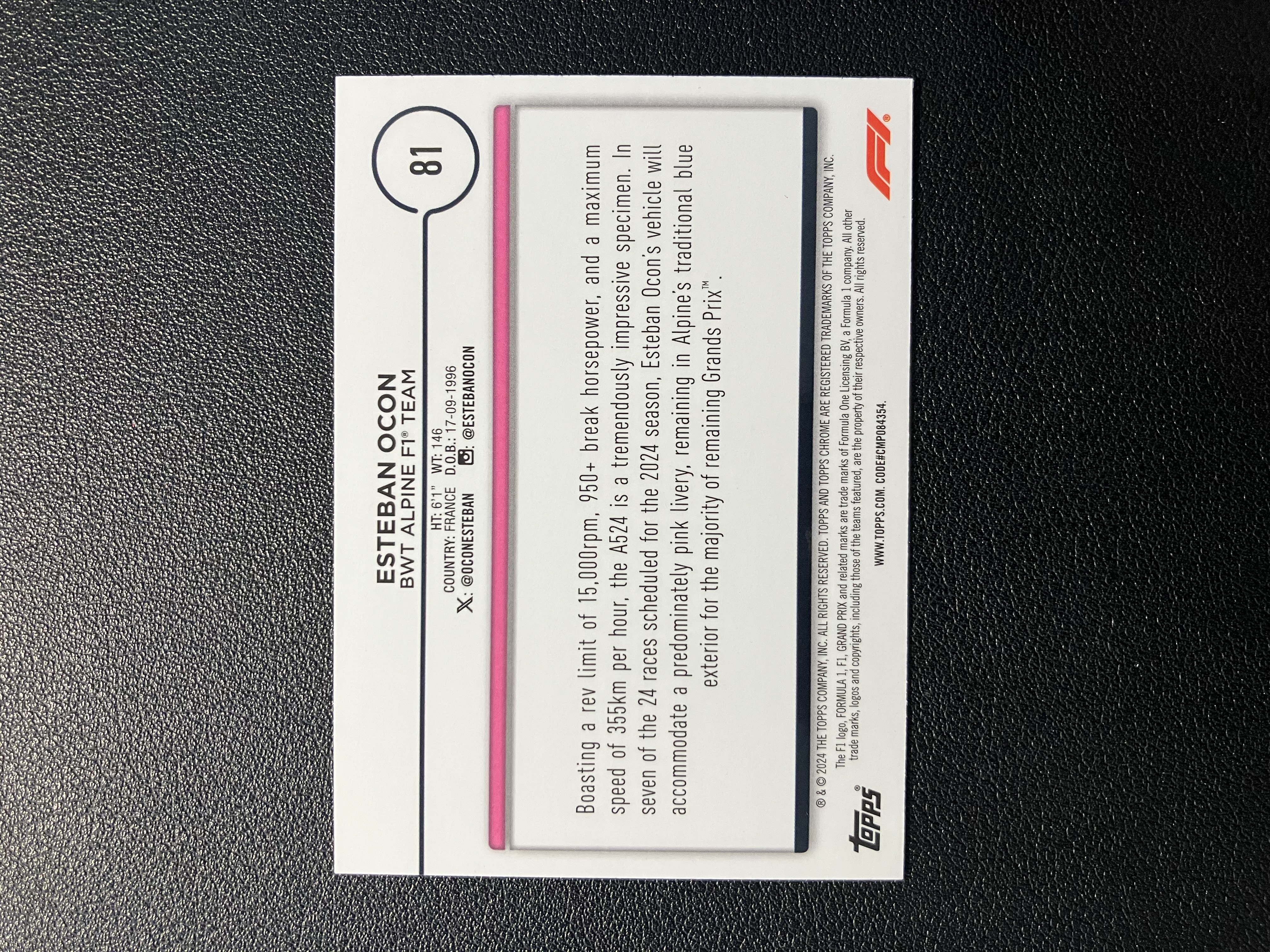 2024 Topps Chrome F1 Esteban Ocon F1 Chrome系列 埃斯特班-奥康 192/150编 蓝脉冲折 赛车 Alpine车队 卡品如图 B190