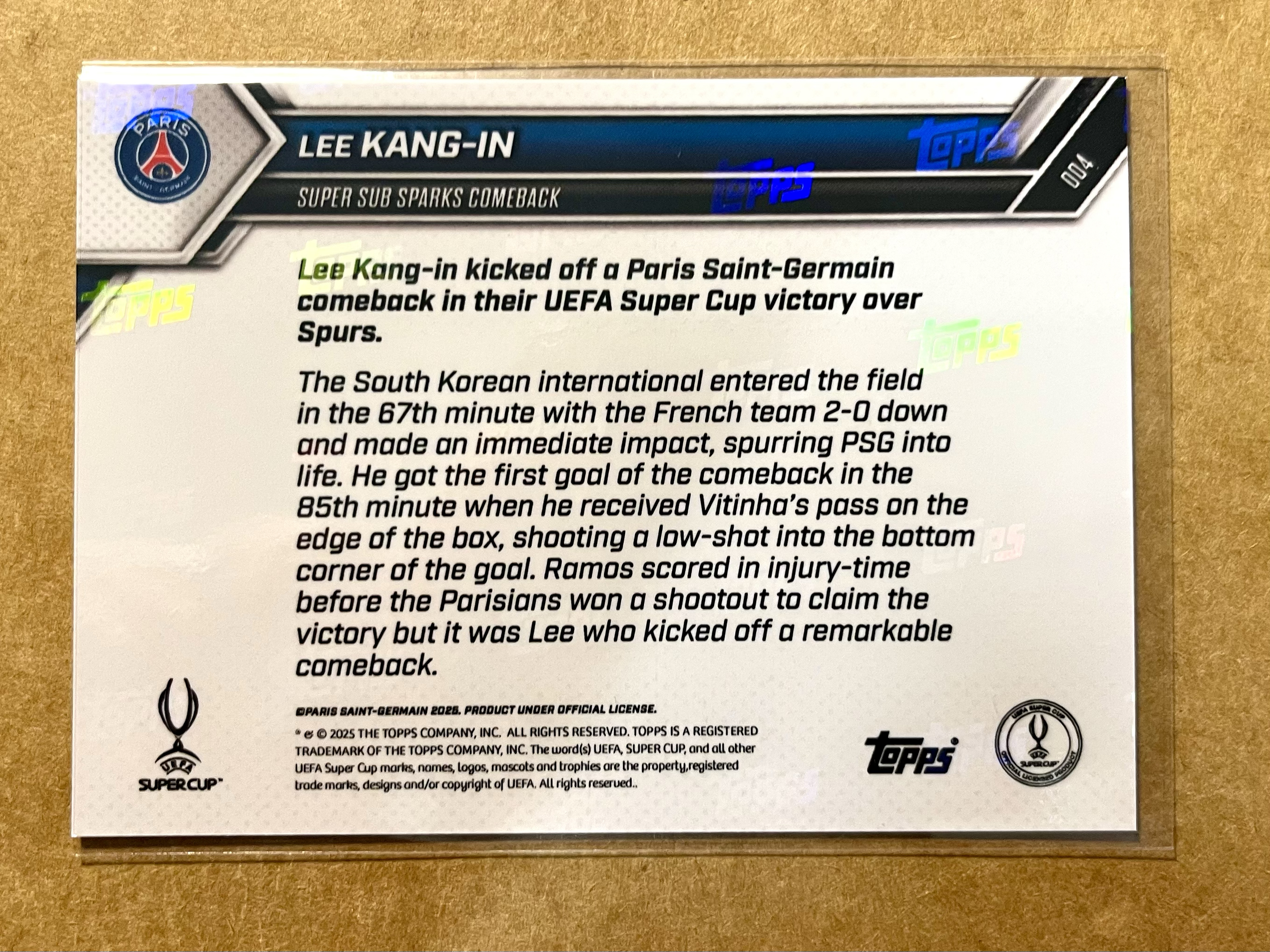 2025 Topps 【蓝矿】 Lee Kang In 李康仁 Topps now系列 欧超杯 法甲 巴黎圣日耳曼 超级替补的进球拉开超级逆转的序幕!