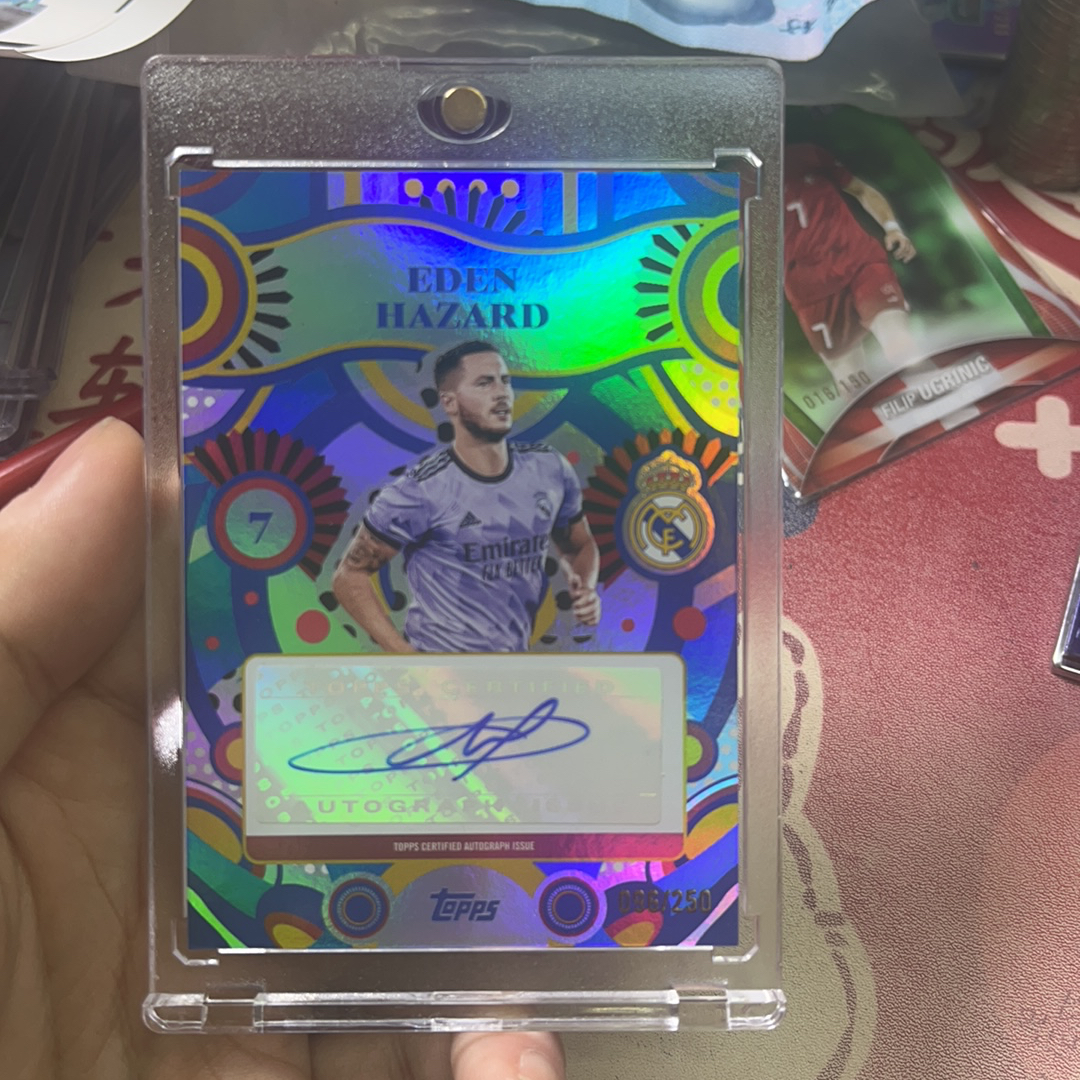 2024 Topps Prizm Eden Hazard 皇马队盒 球王 埃登 阿扎尔 完美签字 限量96/250编 银折 比利时 皇家马德里 经典选图 实卡精美 微瑕 投资收藏必备