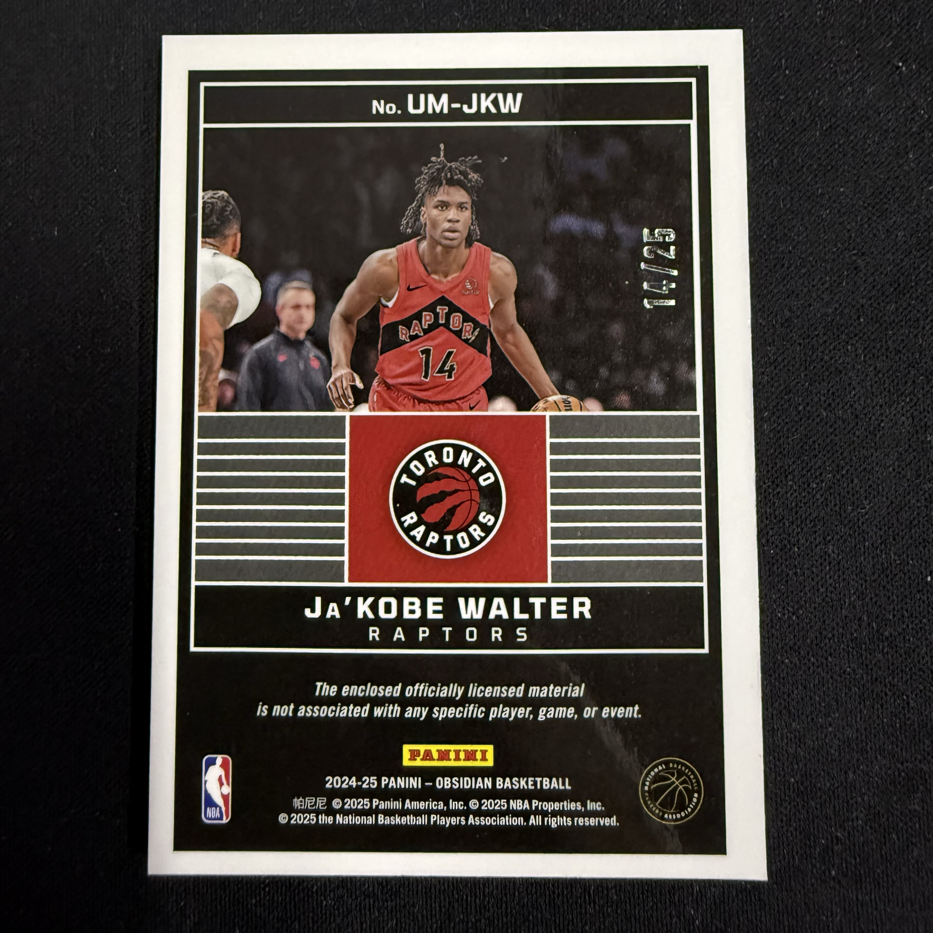 2024-25 Panini Obsidian Ja'Kobe Walter RC 【SC拍卖】黑曜石 贾科比沃尔特 猛龙 新秀 14/25编 大窗物料 瑕疵如图收藏必备(ing哥)