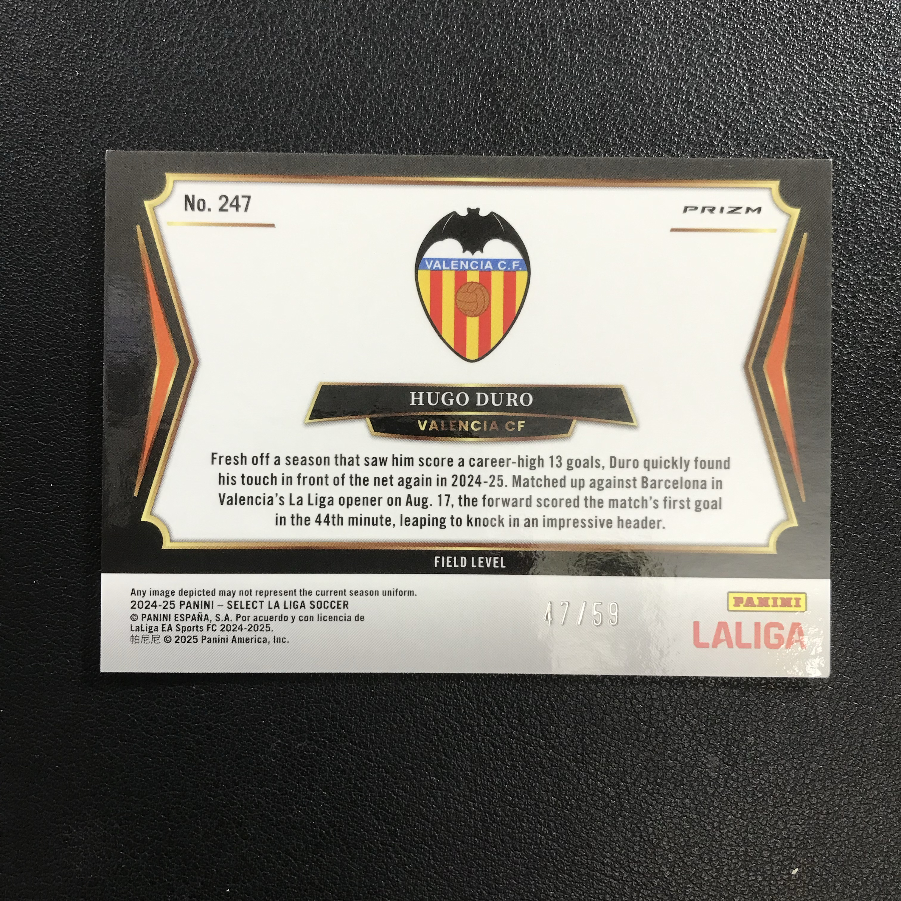 2025 panini prizm select 西甲Hugo Duro 西甲 瓦伦西亚 乌戈 杜罗 59编 红波纹折 卡品如图 极光哥