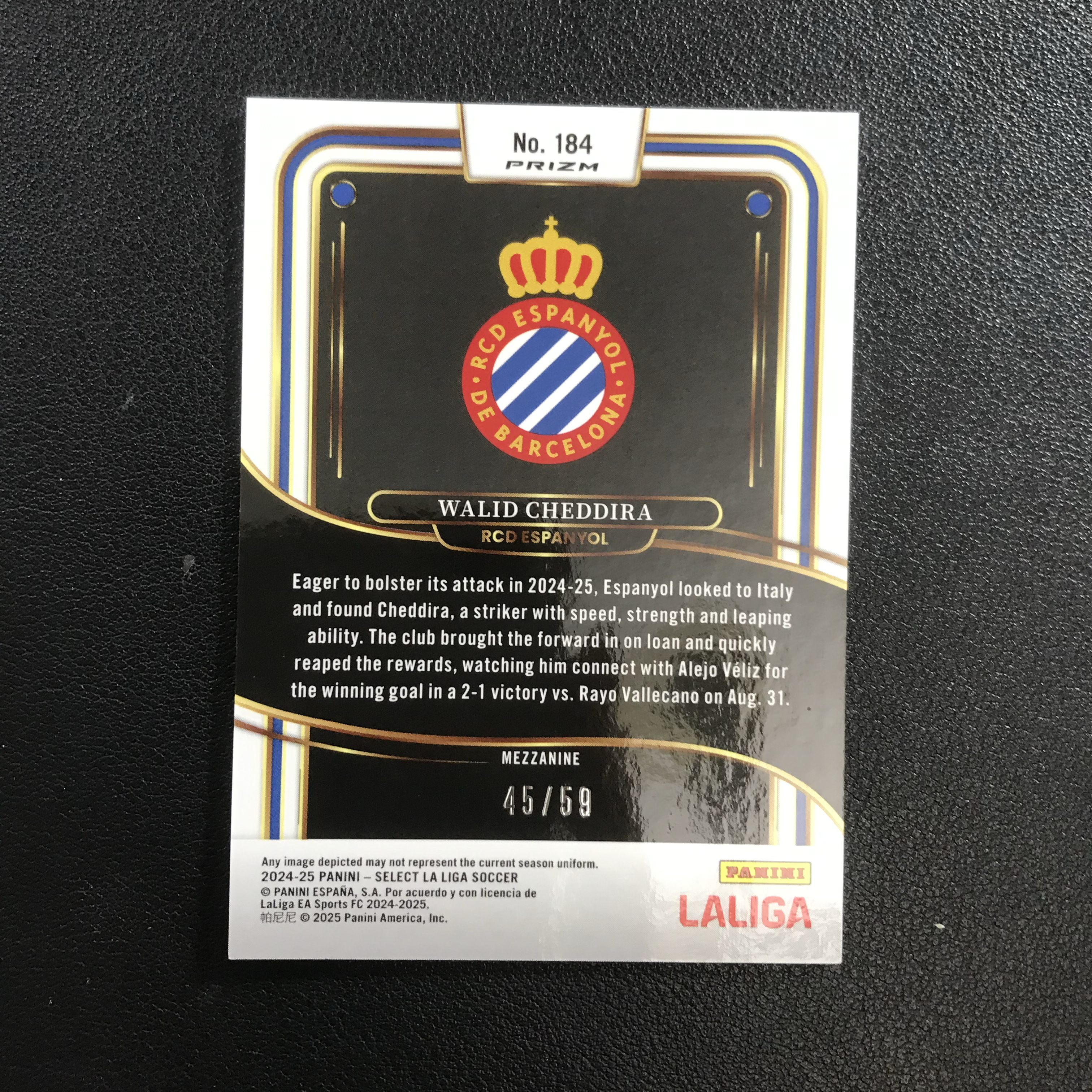 2025 panini prizm select 西甲walid cheddira 瓦利德 谢迪拉 西班牙人 59编 红波纹折 卡品如图 收藏必备 拍前阅读描述 极光哥