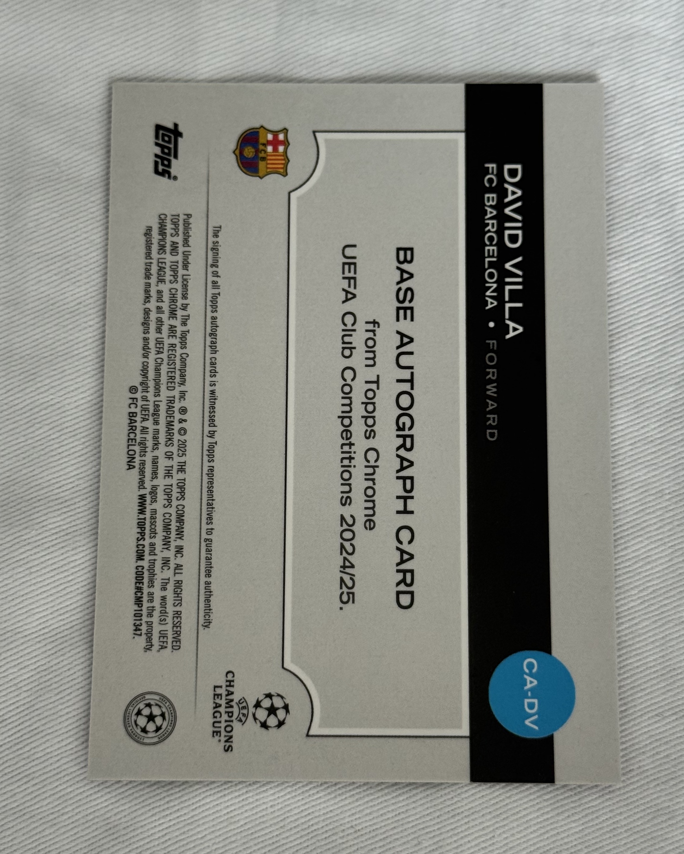 2024-25 Topps Chrome David Villa tc 欧冠 巴萨 大卫 比利亚 紫熔岩折 签字 75编 捧杯选图 卡品如图 收藏必备