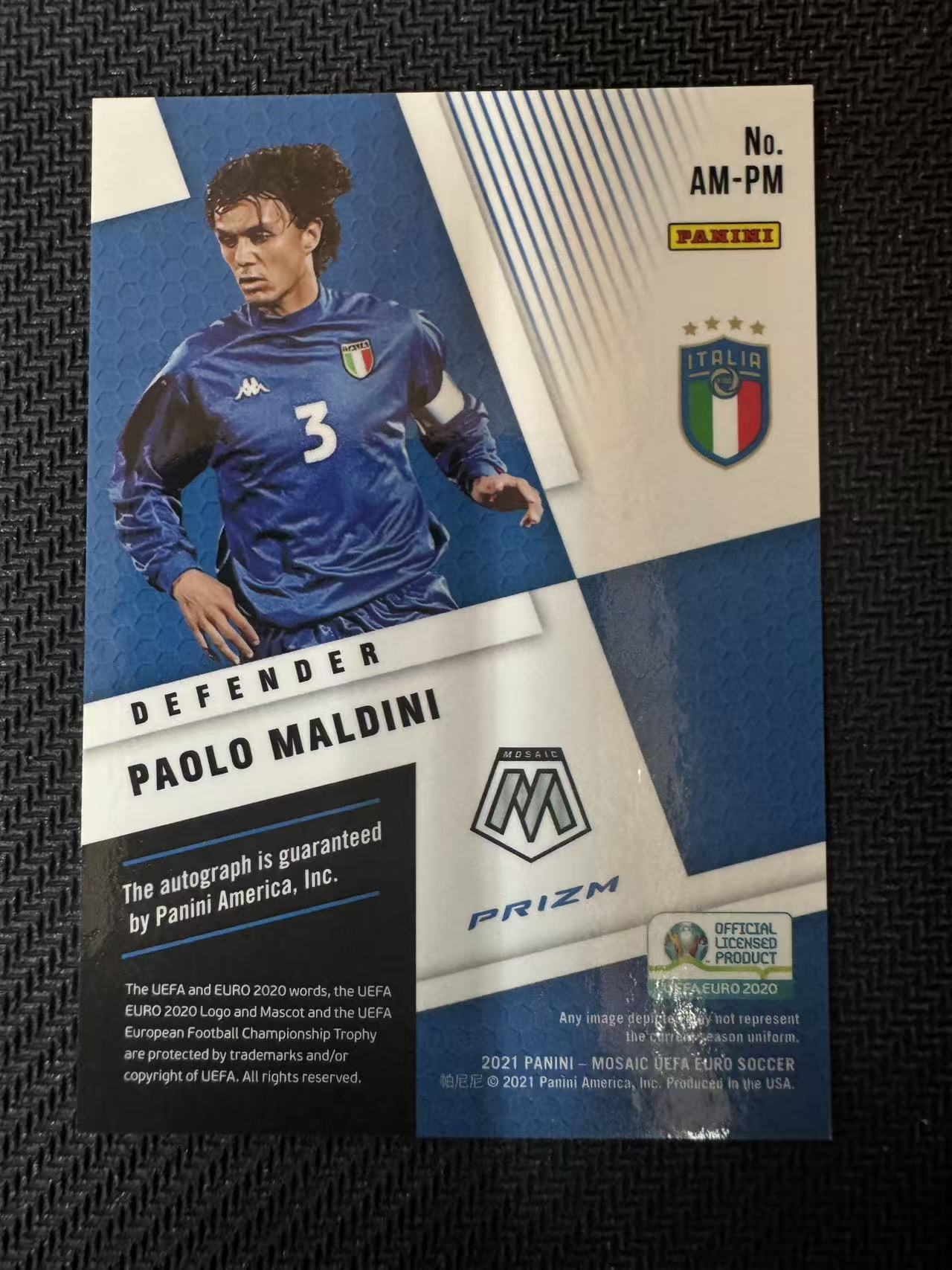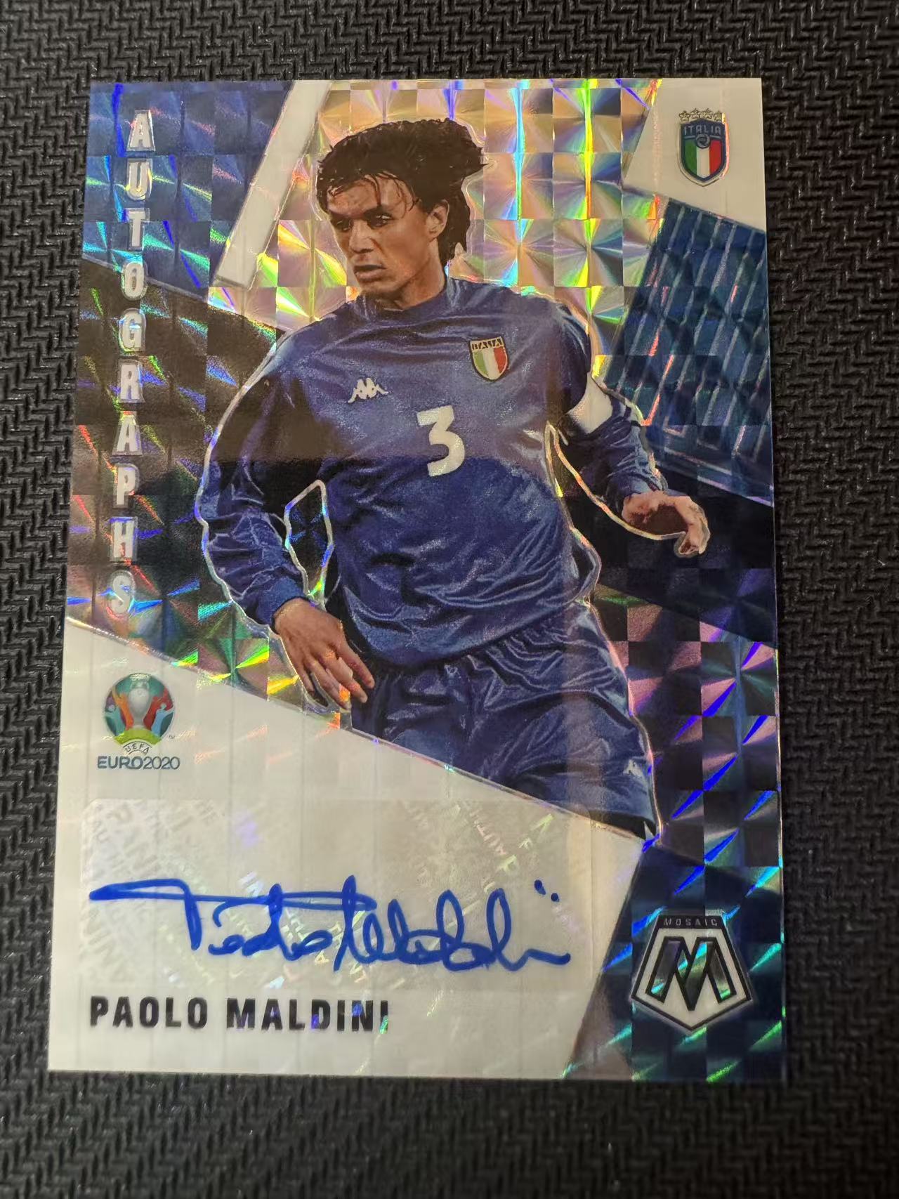 2021 Panini Mosaic Euro Paolo Maldini 欧洲杯 马赛克 意大利 名宿 保罗 马尔蒂尼 米兰王子 AC米兰 传奇队长 签字 红黑领袖 签字完美 实卡非常漂亮