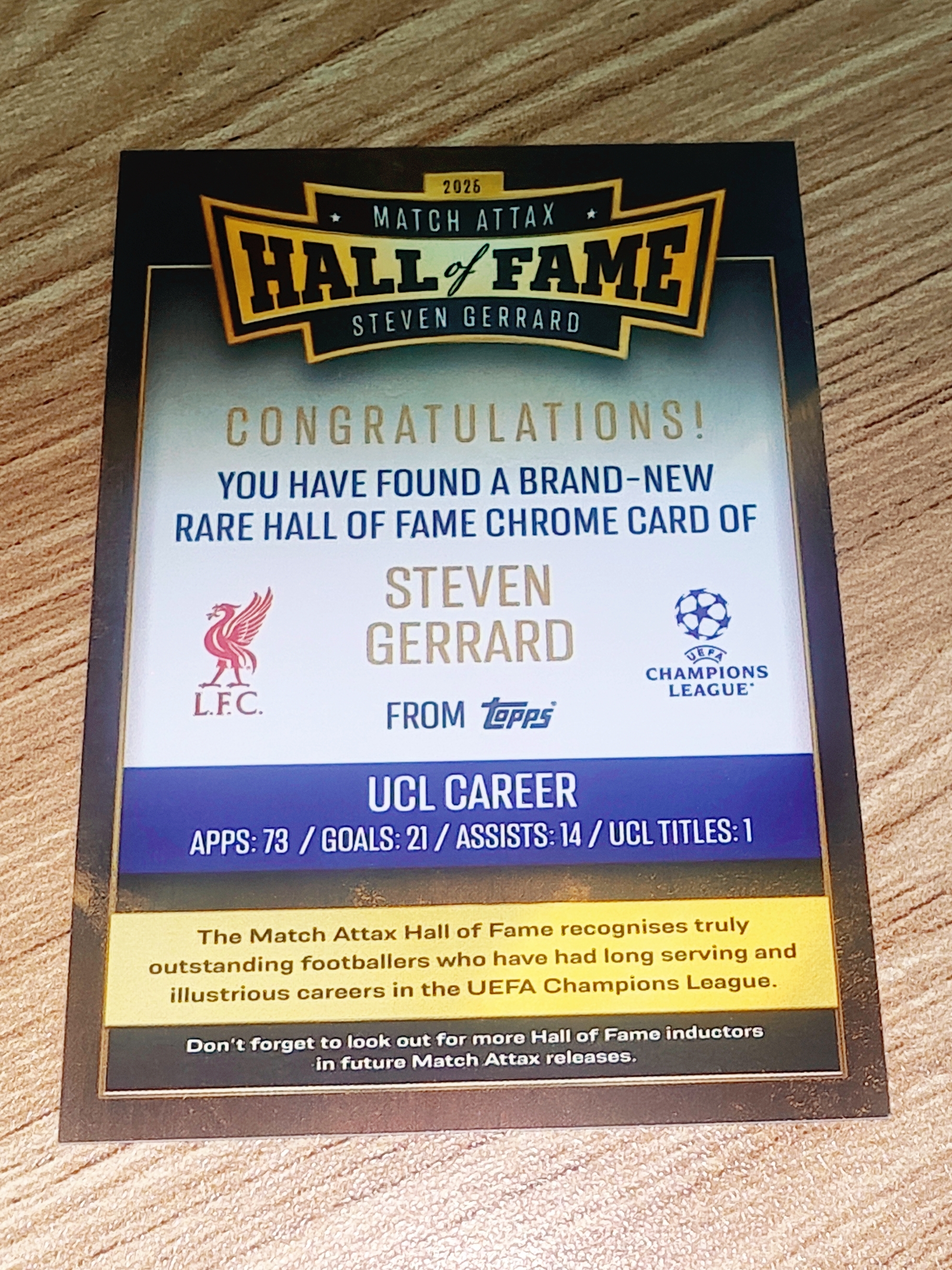 2025-26 topps match attax 欧冠 Hall of Fame STEVEN GERRARD 杰拉德 利物浦 大比例 五头 名人堂 特卡 Chrome 收藏投资首选 卡品不保如图