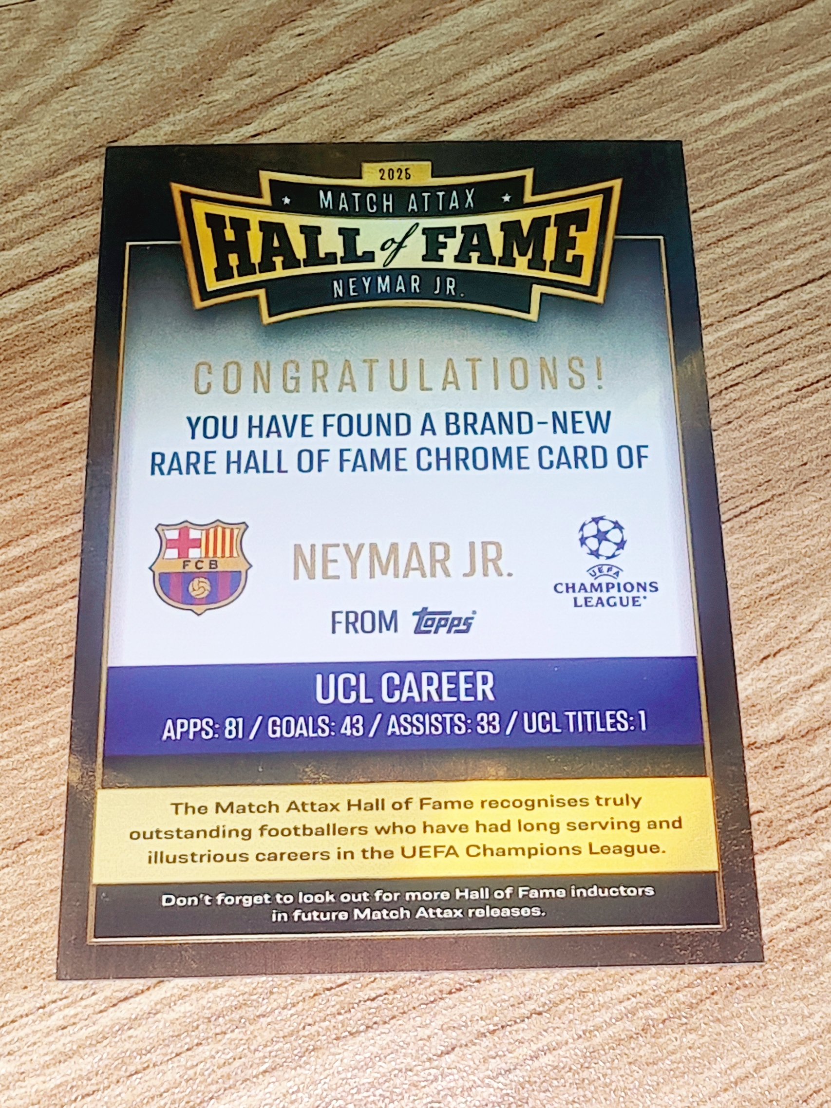 2025-26 topps match attax 欧冠 Hall of Fame NEYMAR JR. 内马尔 巴萨 大比例 五头 名人堂 特卡 Chrome 收藏投资首选 卡品不保如图