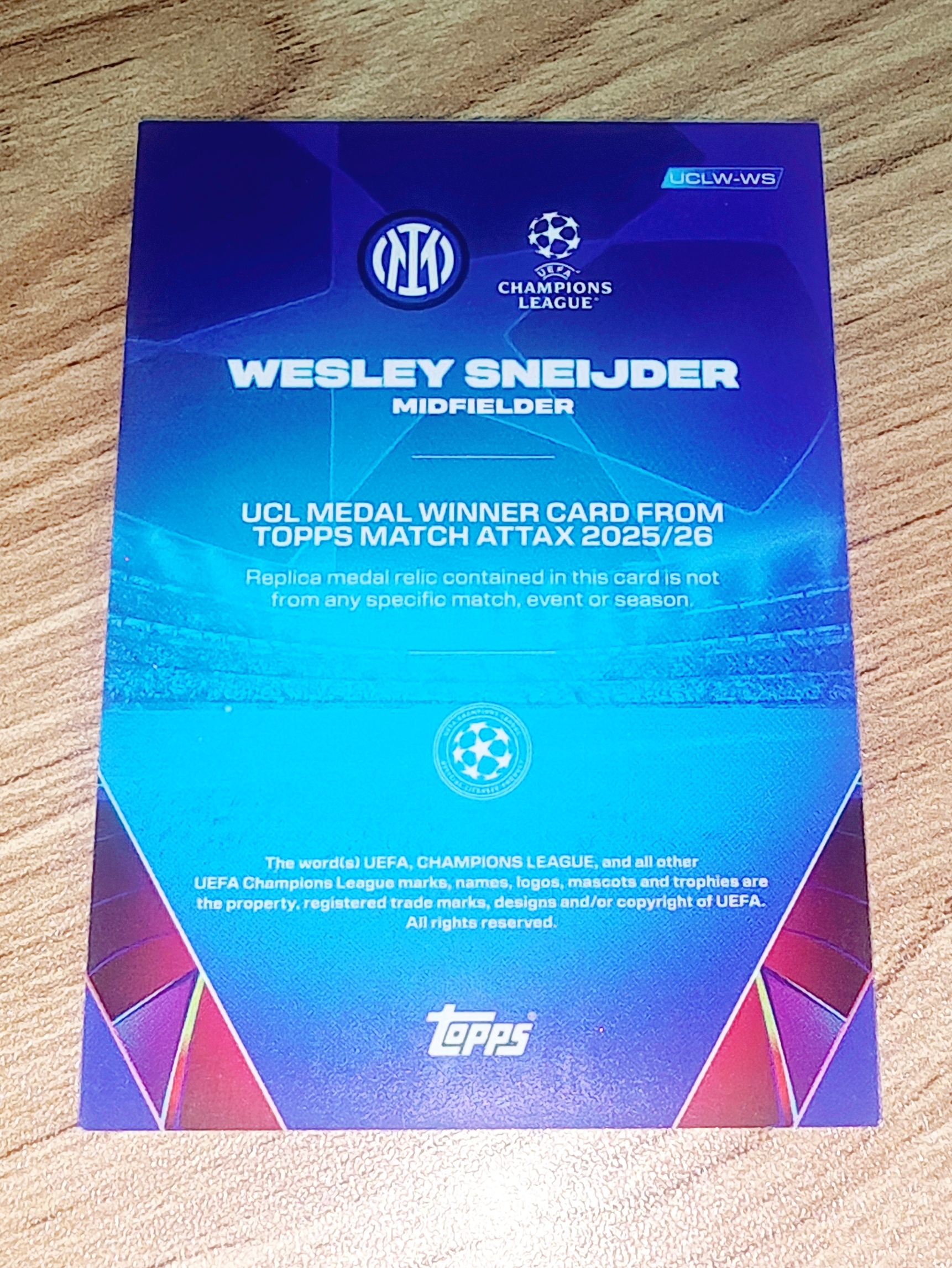2025-26 topps match attax 欧冠 SNEIJDER 斯内德 国米 大比例 欧冠奖牌卡/UCL Medal Winner Relic 金币 特卡 收藏投资首选 卡品不保如图