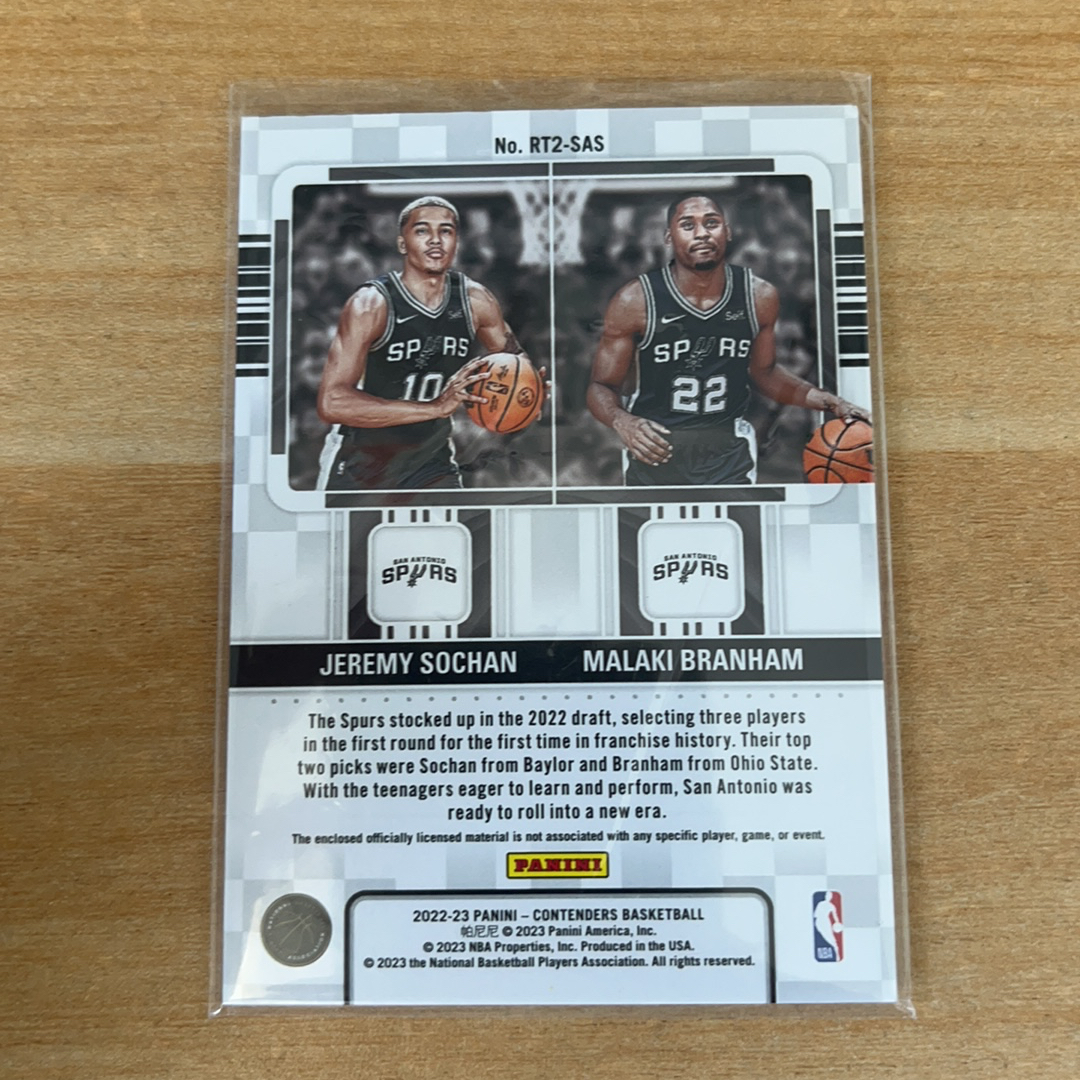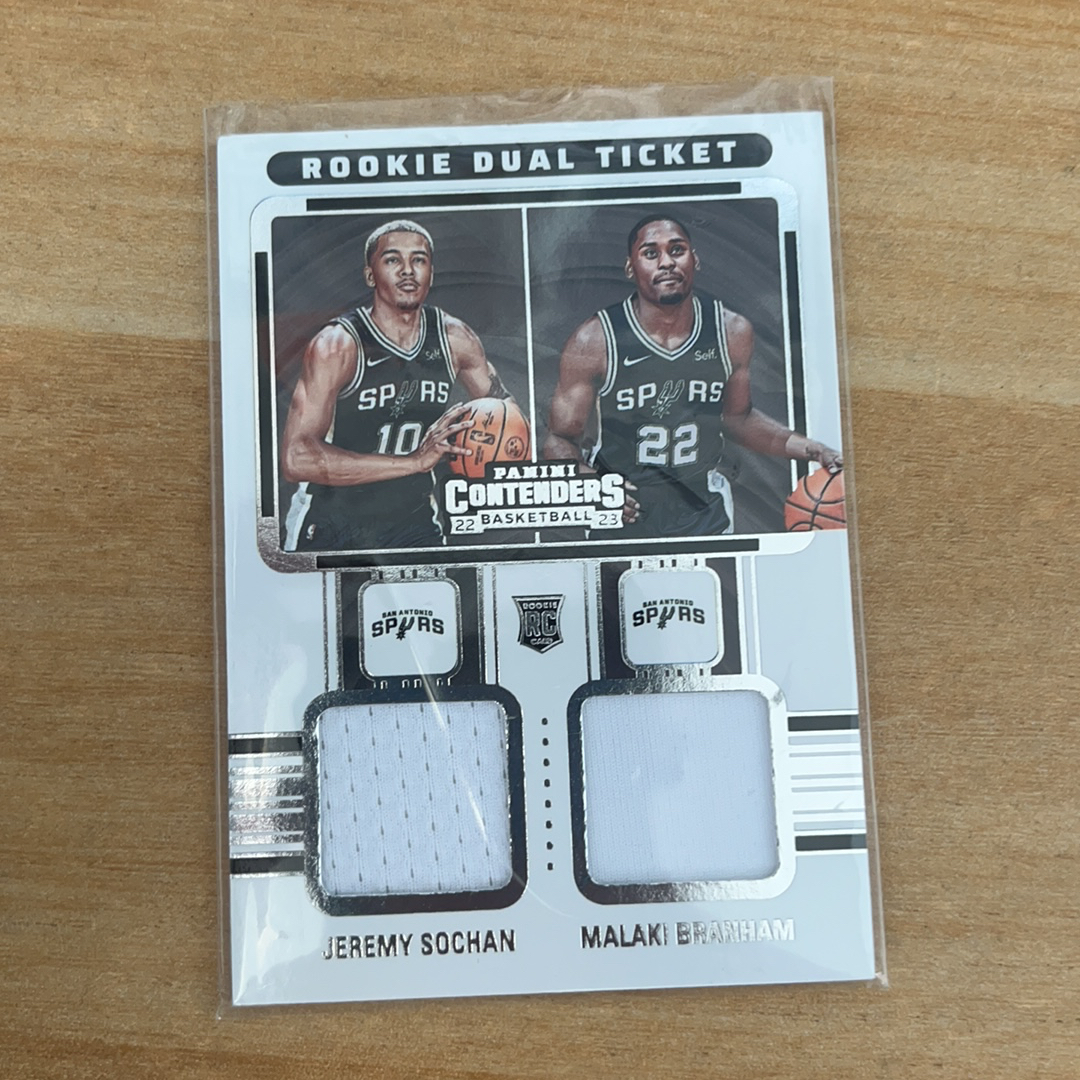 2022-23 Panini Contenders Jeremy Sochan RC 球票 新秀 RC 杰里米 索汉 马拉凯 布兰纳姆 Rookie Dual 双人球衣