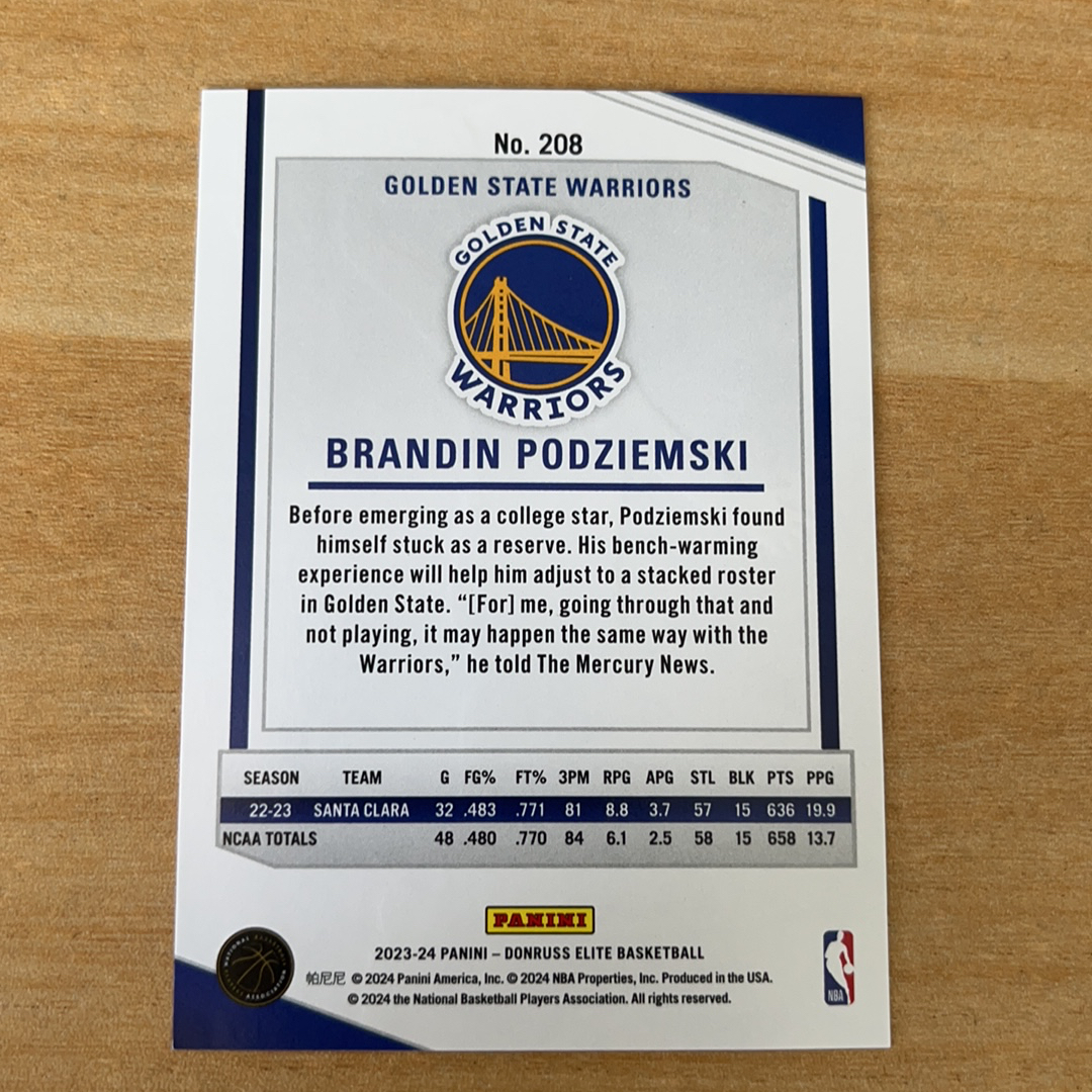2023-24 Panini Elite Brandin Podziemski RC 精英 勇士 新秀 波杰姆斯基 蓝折 折射 74/99编 卡品如图