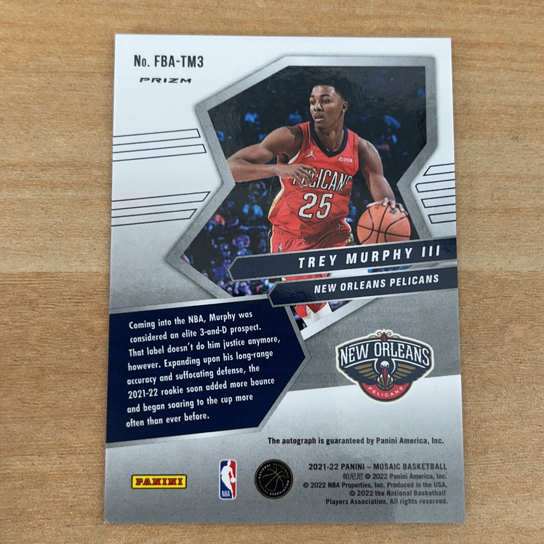 2021-22 Panini Mosaic Trey Murphy III RC 马赛克 新秀RC 特雷 墨菲三世 优秀潜力3D球员 鹈鹕 泡泡折 Fast Break 快攻签 签字